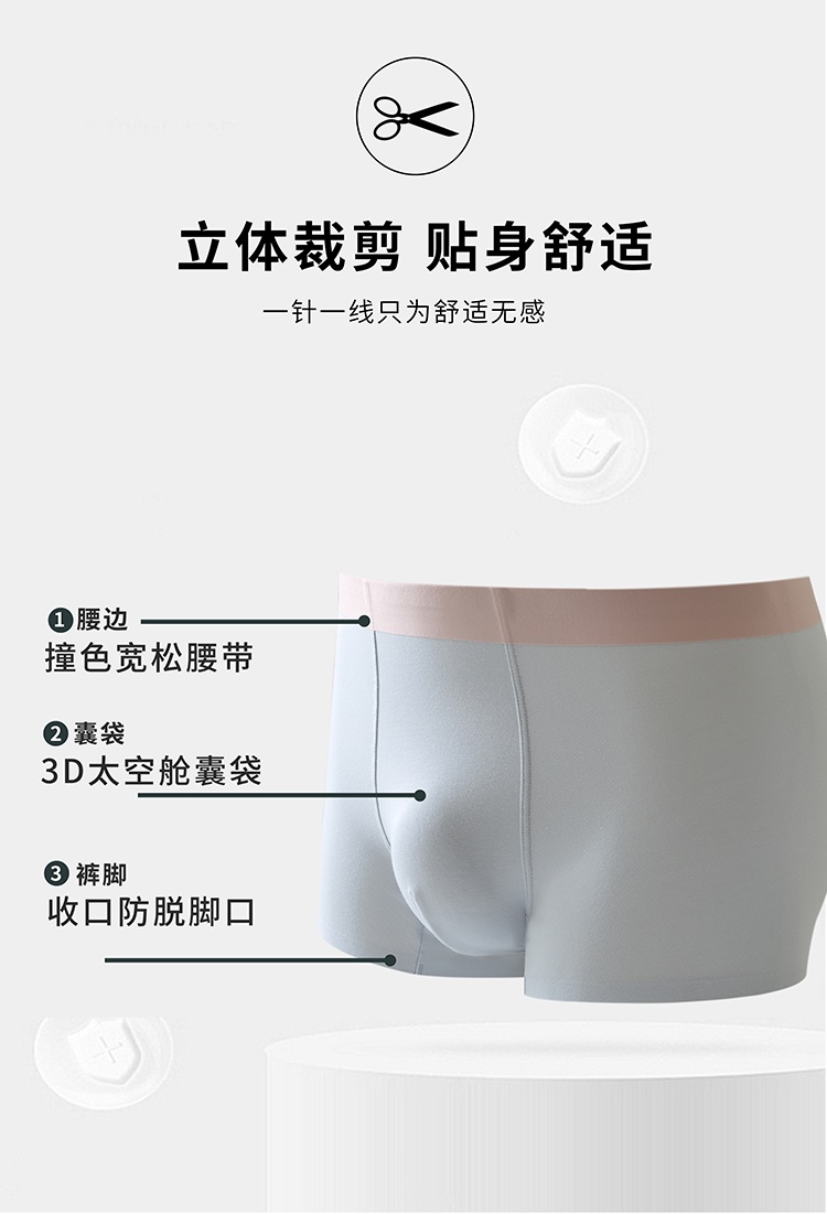 男士RC棉莫代尔棉混纺无痕腰头撞色平角内裤8801