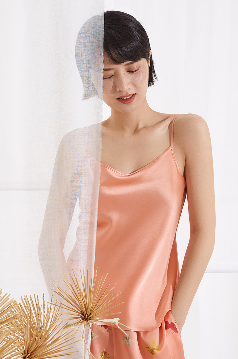 A型下摆,45度斜丝剪裁,衬托腰部纤细感,拉长身材比例,灵动飘逸。