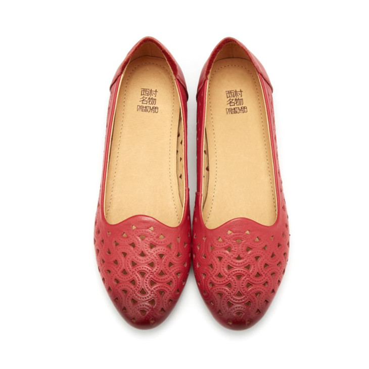 西村名物春夏新款柔软舒适透气镂空平底跟女鞋单鞋X29AH13371