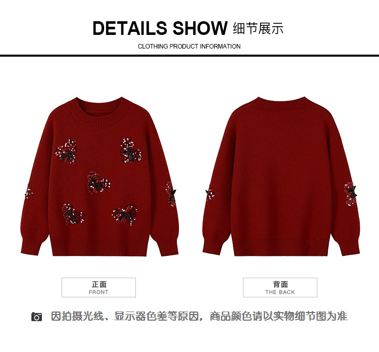 奢姿大码女装2026春季时尚蝴蝶结装饰毛衣胖妹妹气质休闲圆领上衣9861669983