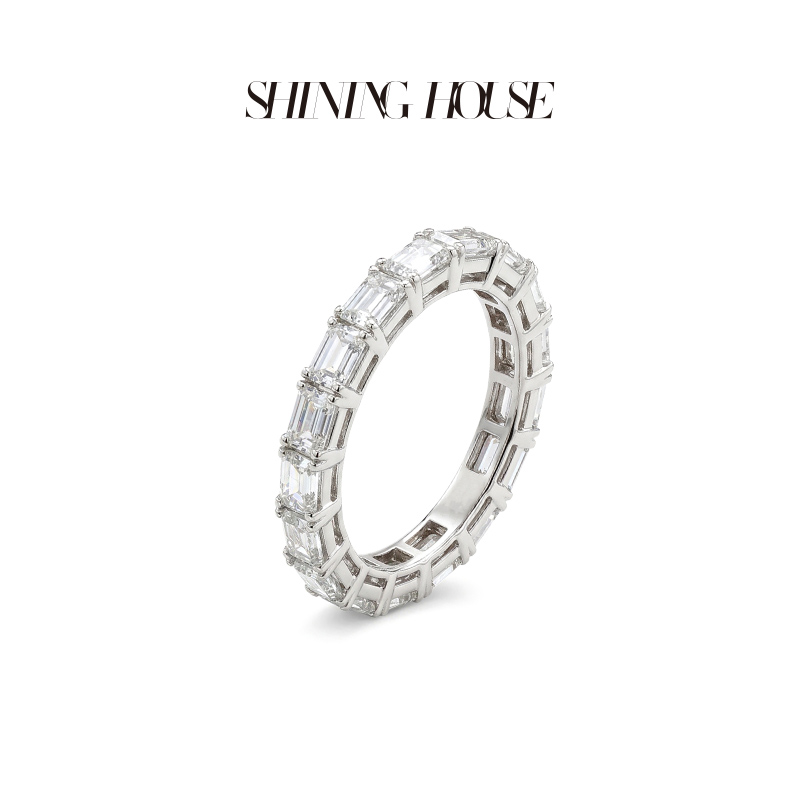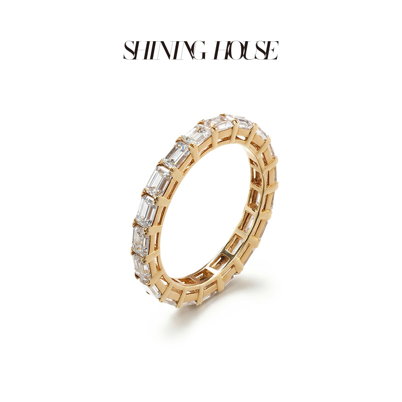 ShiningHouse[培育] 18k金钻石戒指排钻戒指2克拉钻人工真钻人造钻石K金戒指设计感简约钻石戒指悦己送礼臻选【此商品不支持7天无理由退货退款】预计3日发货