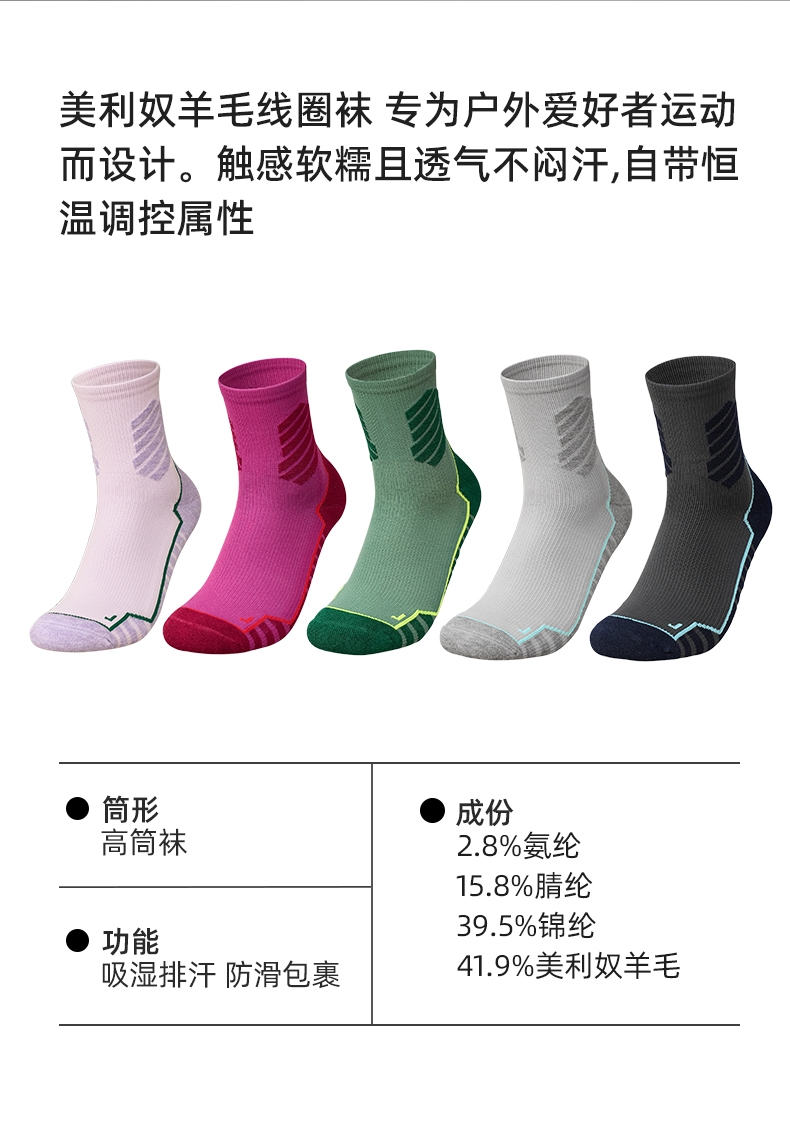 [2双]Taketop轻装徒步袜40.5%美丽奴羊毛透气耐磨轻量徒步袜TPA253M013/TPA253M012