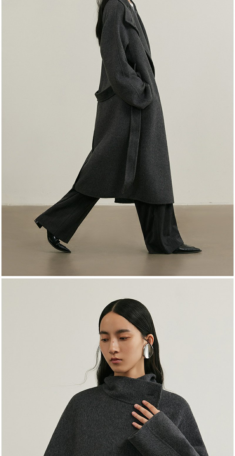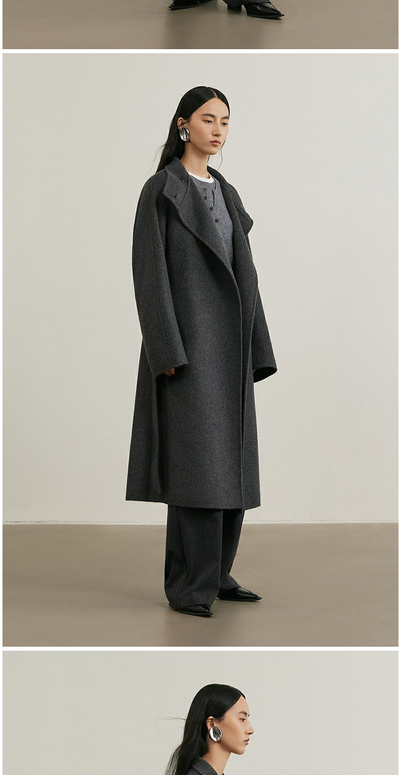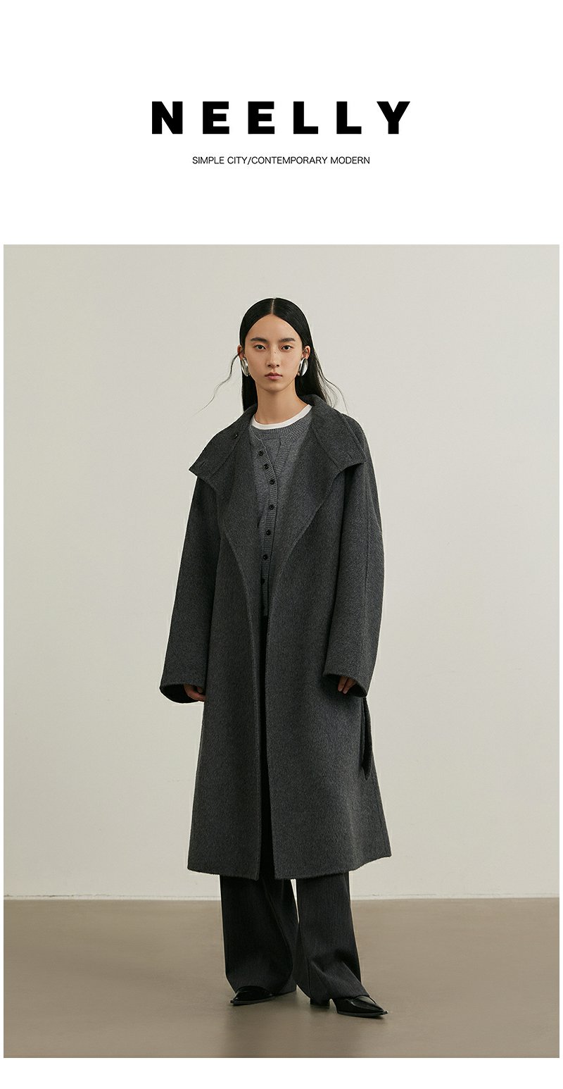 NEELLY纳俪商场同款冬季新款简约通勤双面羊毛呢大衣女立领长外套N25104N04405