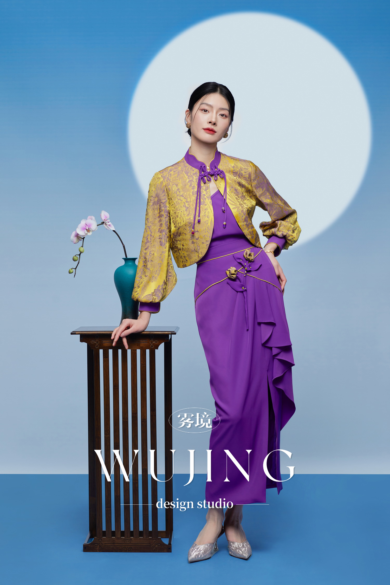 3205141 紫金梦雨 进口纹理蜂窝缎半裙 雾境