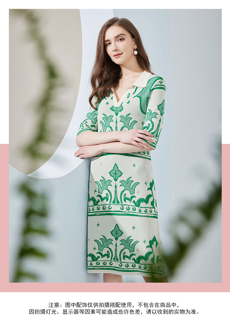 NF651斯尔丽瑟俪2023春夏新品撞色时尚提花修身显瘦优雅气质针织连衣裙