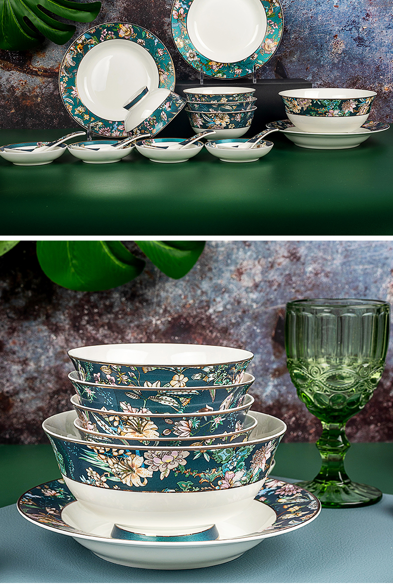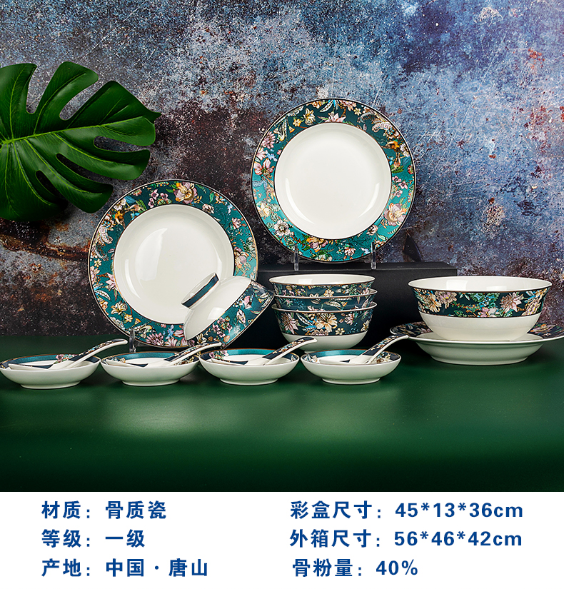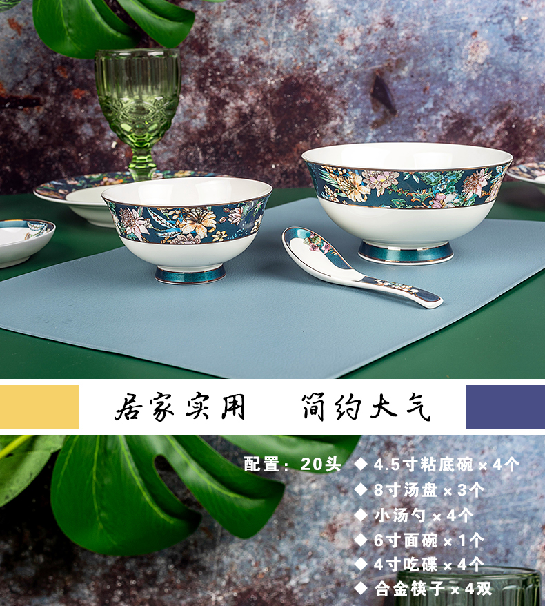 唐惠餐具整套20头家用欧式碗碟盘套装唐山骨瓷餐具送长辈礼物绿野仙踪 绿野仙踪20头