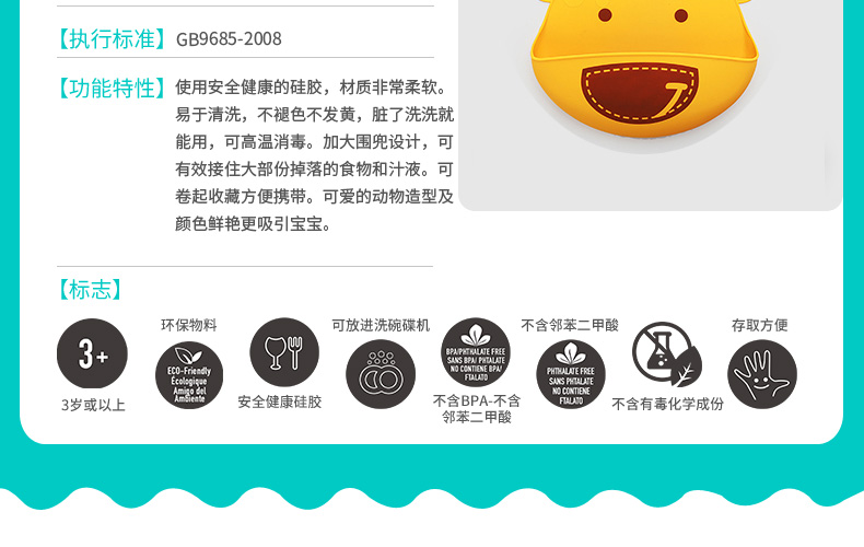 加拿大MARCUS&MARCUS宝宝硅胶围兜 6个月以上【马库狮】