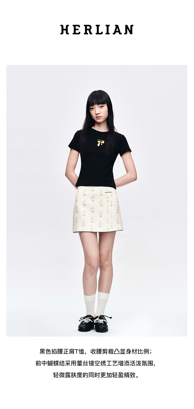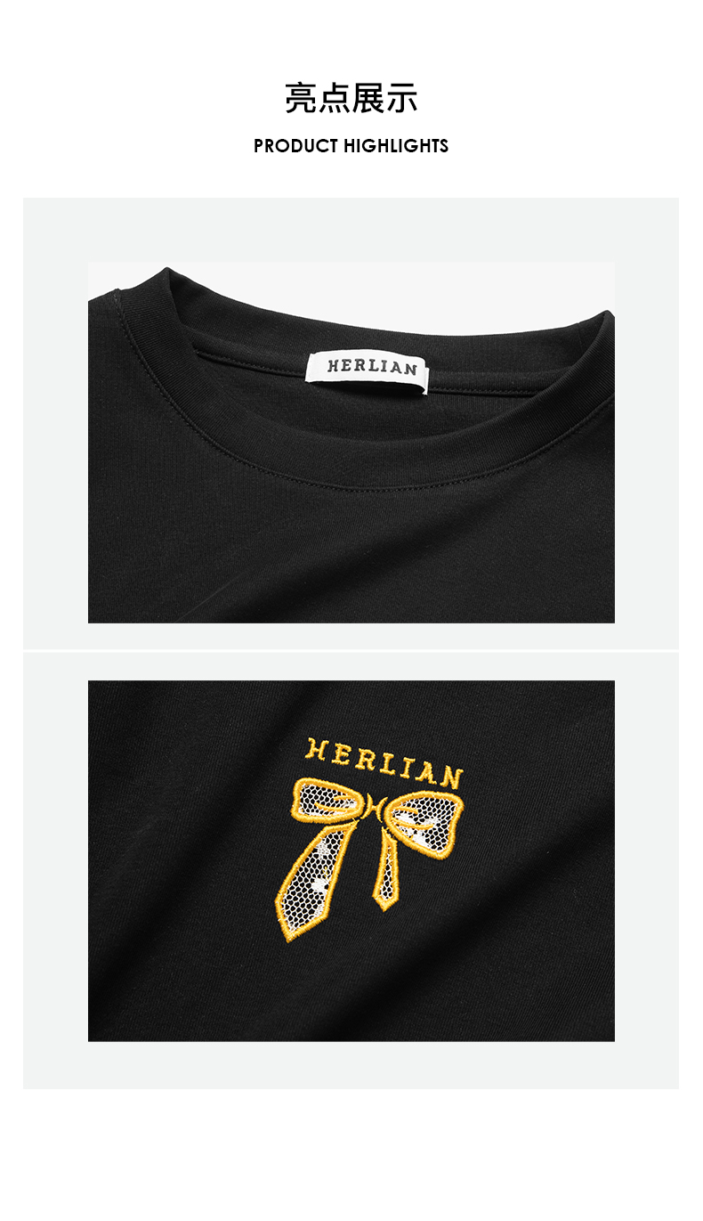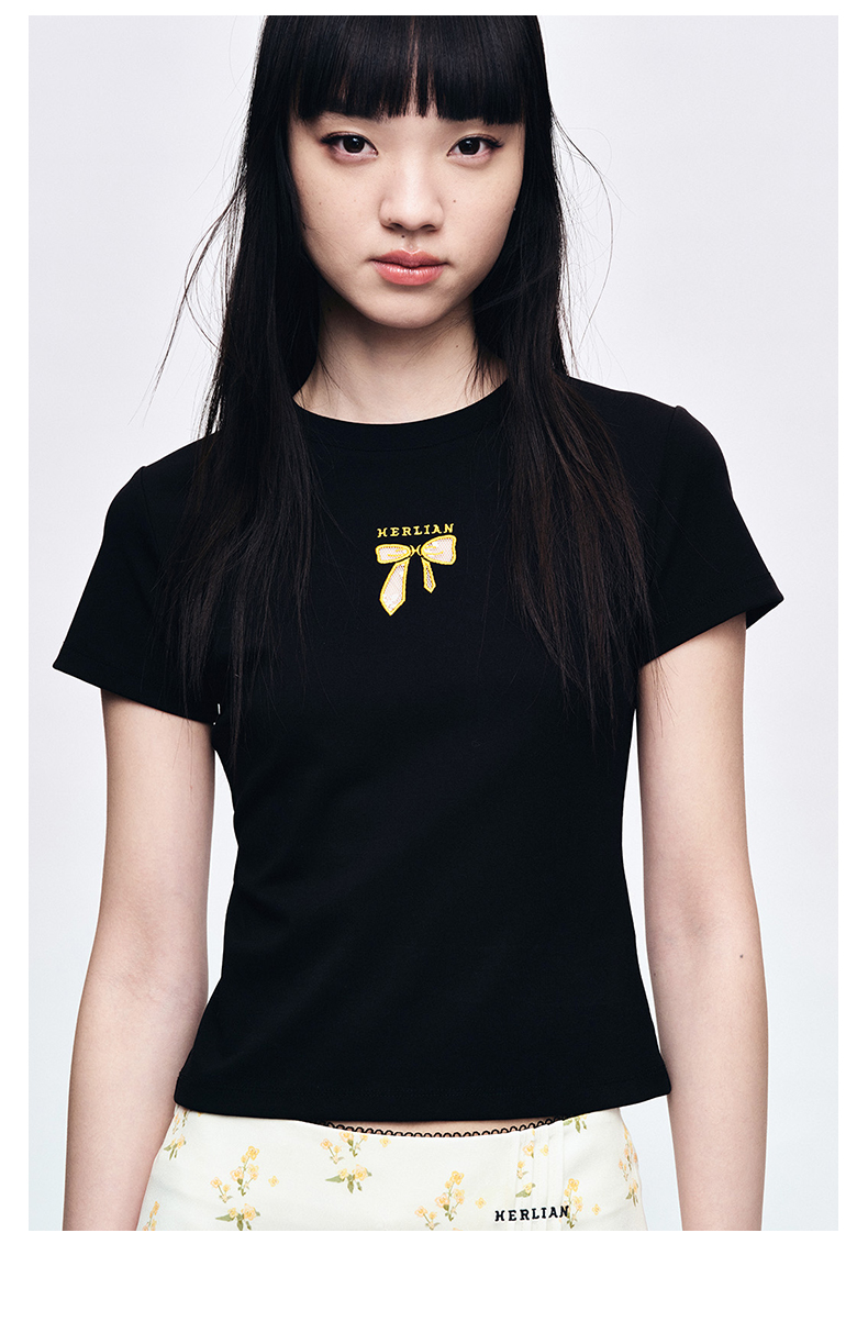 HERLIAN 2025夏季新品女士蝴蝶结刺绣短袖TEE