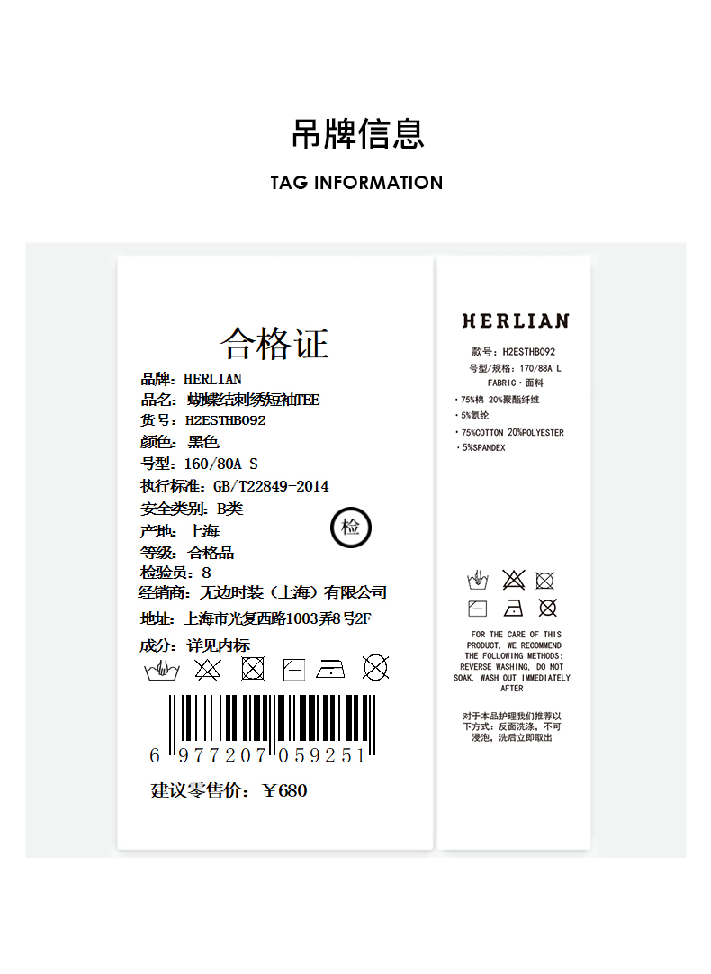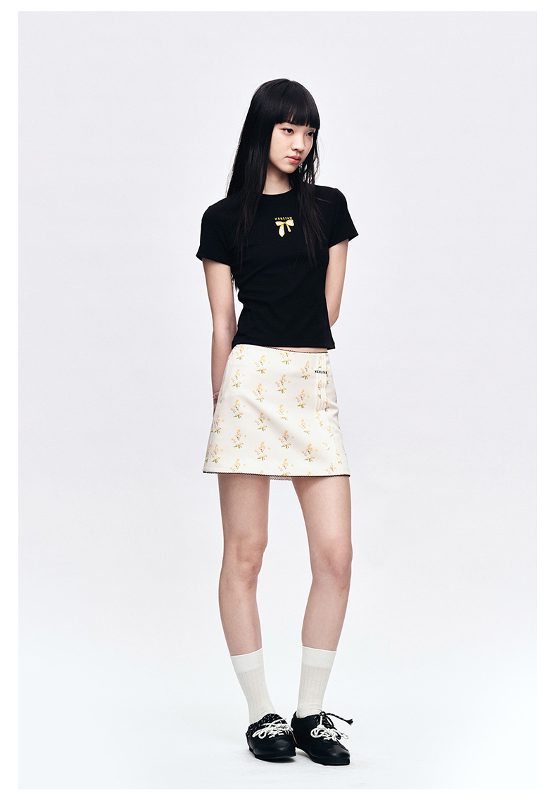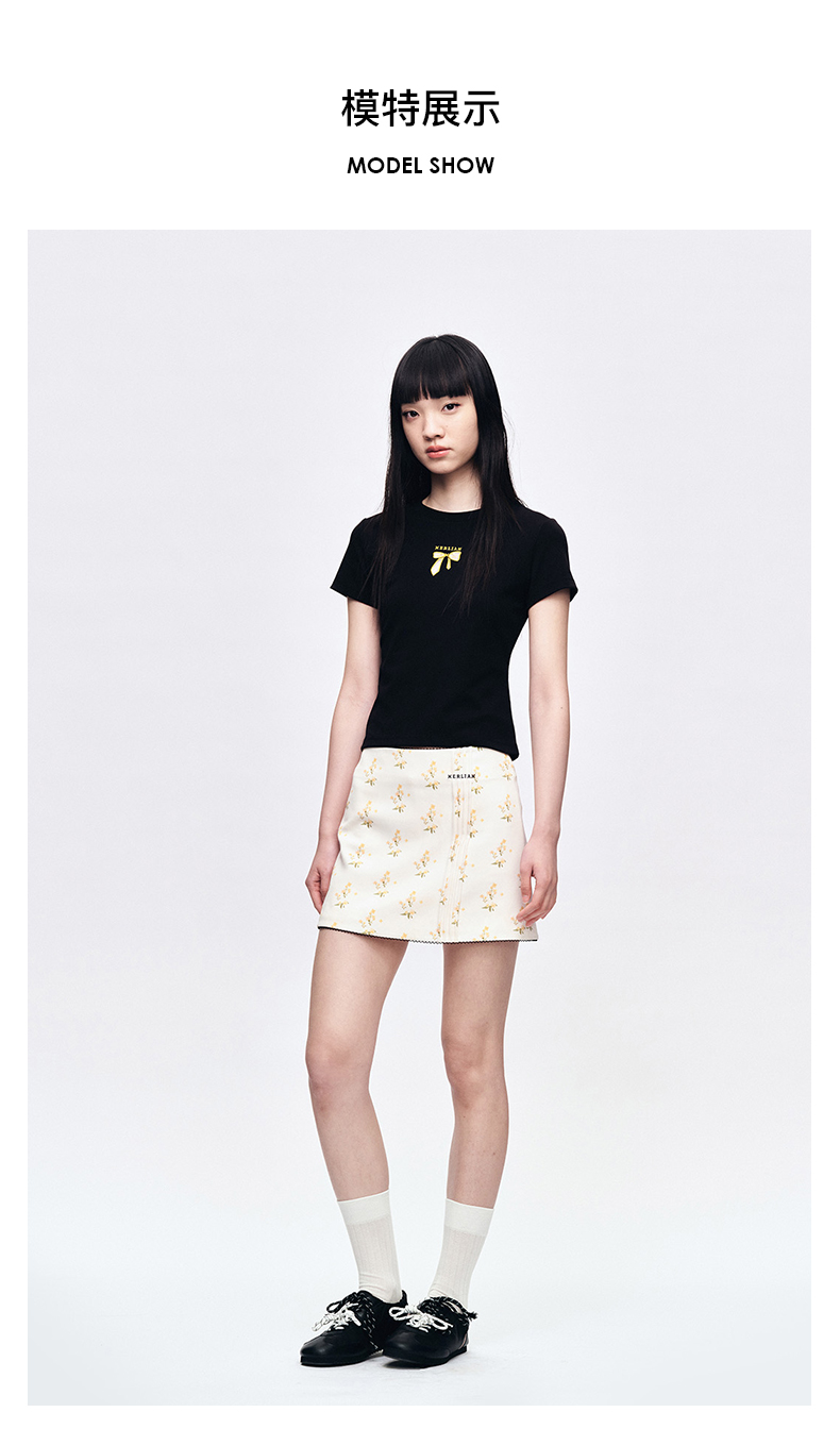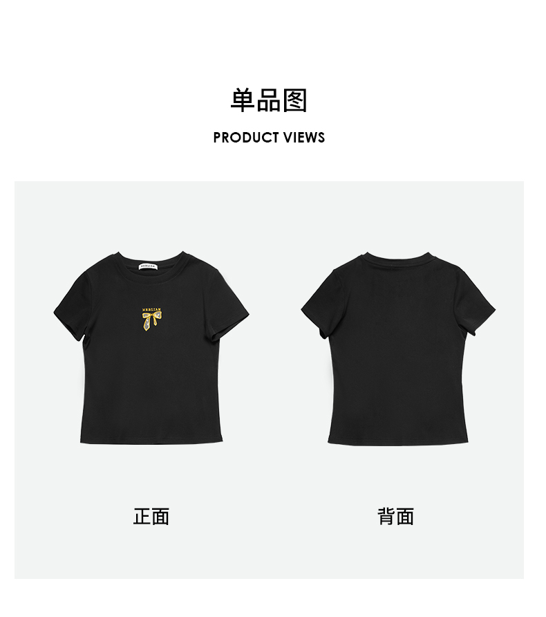 HERLIAN 2025夏季新品女士蝴蝶结刺绣短袖TEE