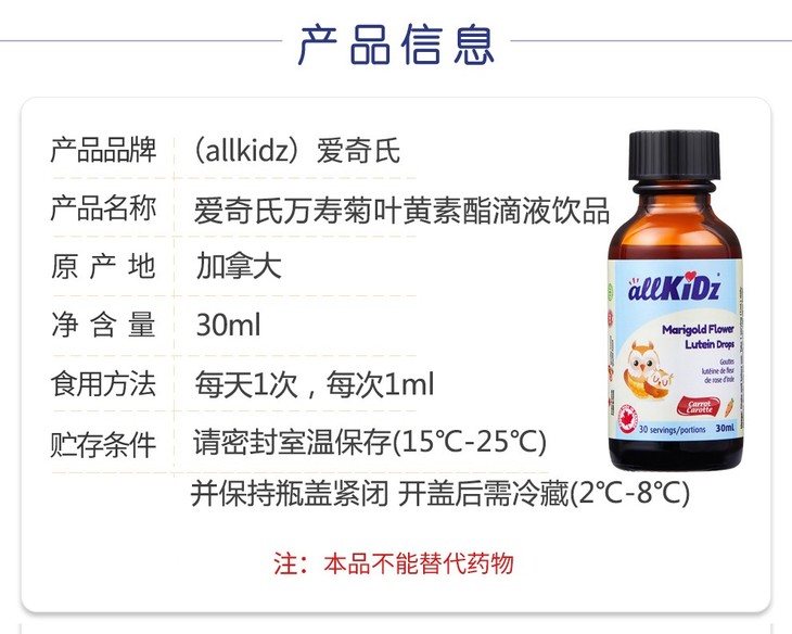 加拿大爱奇氏万寿菊叶黄素酝滴液30ml