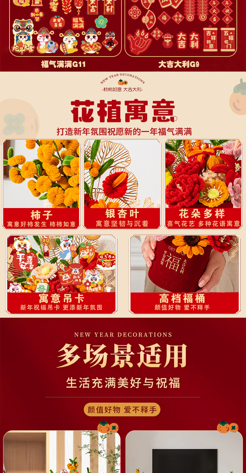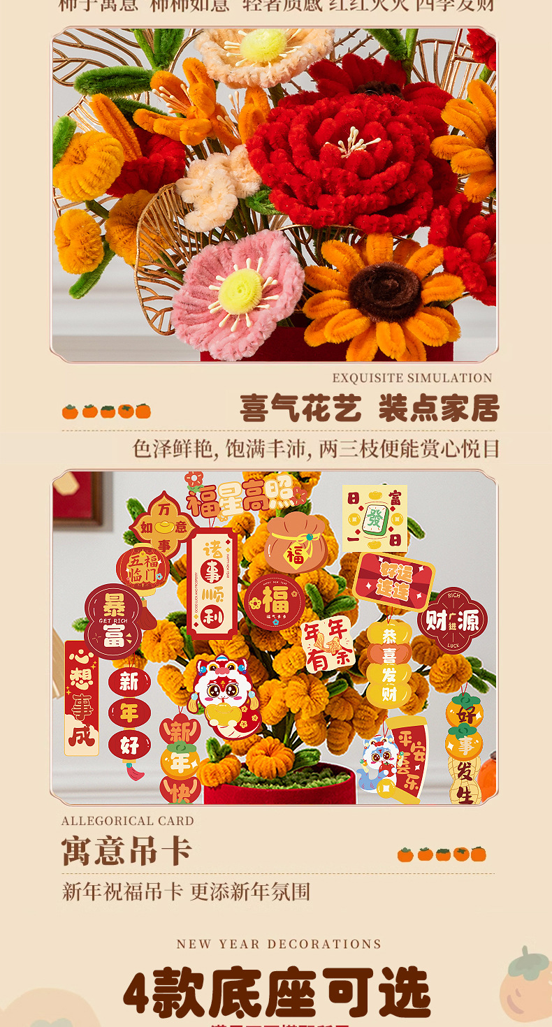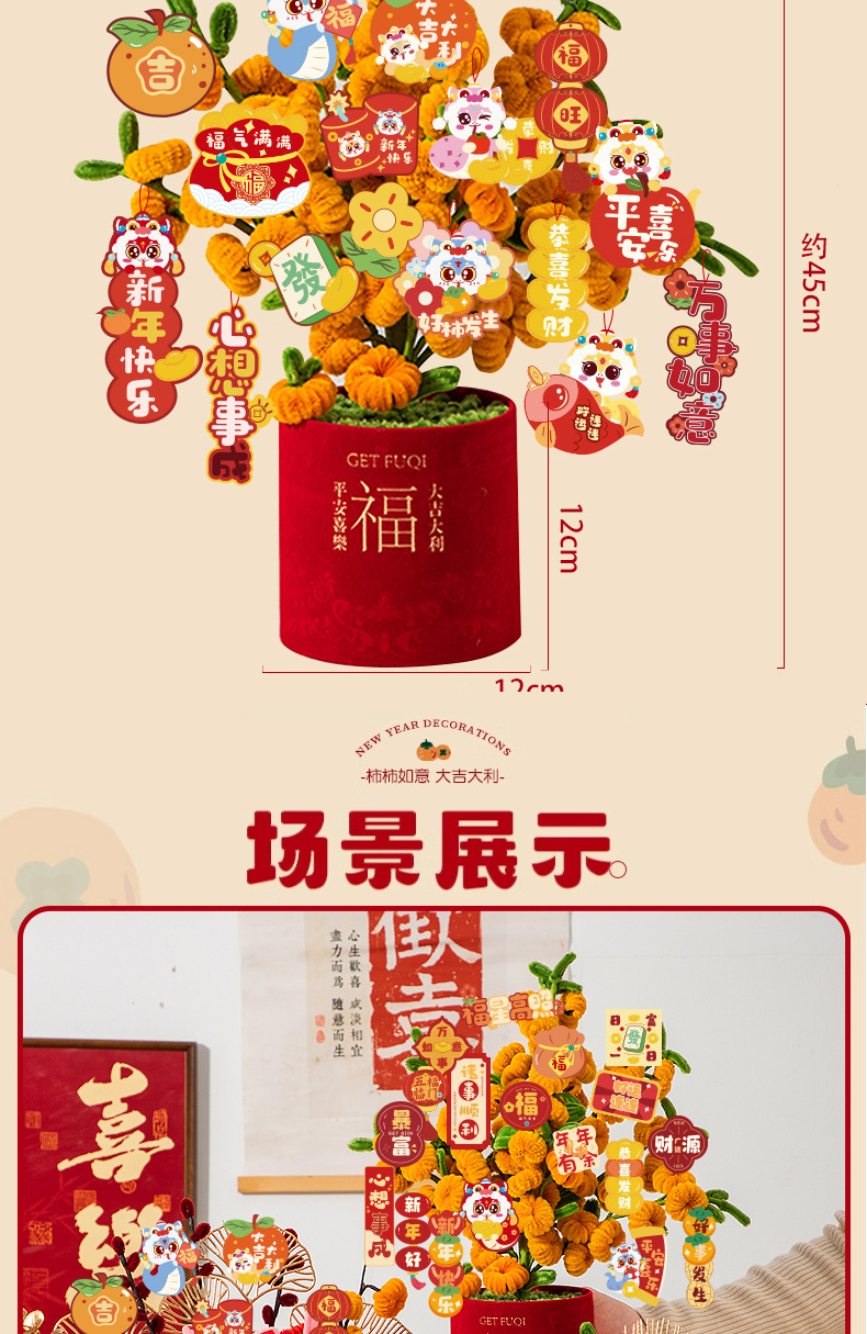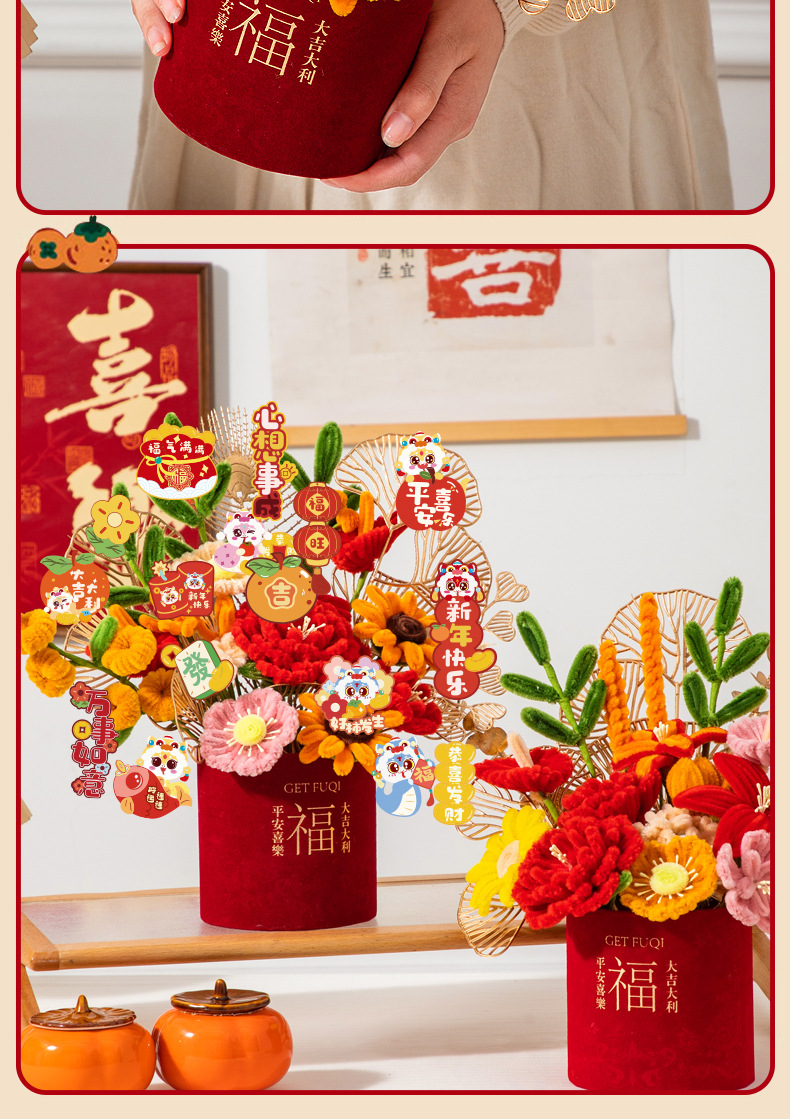 【赠胶枪】新年礼物春节元旦蛇年布置摆件 扭扭棒diy材料包 过年装饰抱抱福桶 亲子互动玩具
