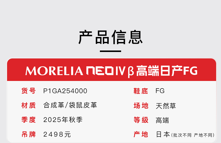 小李子美津浓莫雷拉MORELIANEO4高端日产FG长钉袋鼠皮足球鞋成人