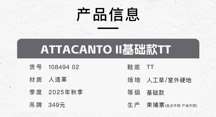 小李子PUMA彪马ATTACANTO 2基础款TT碎钉足球鞋成人男108494 02