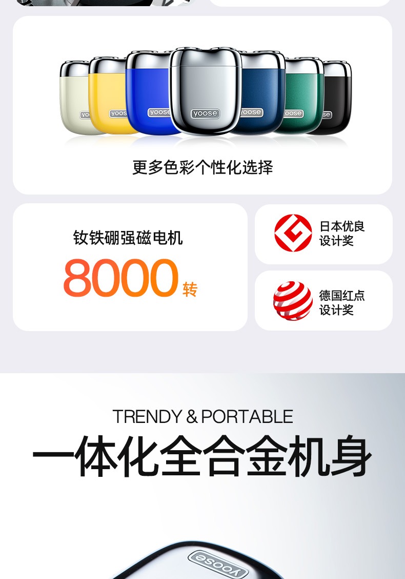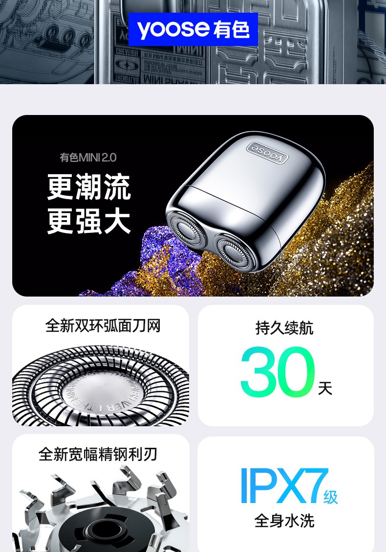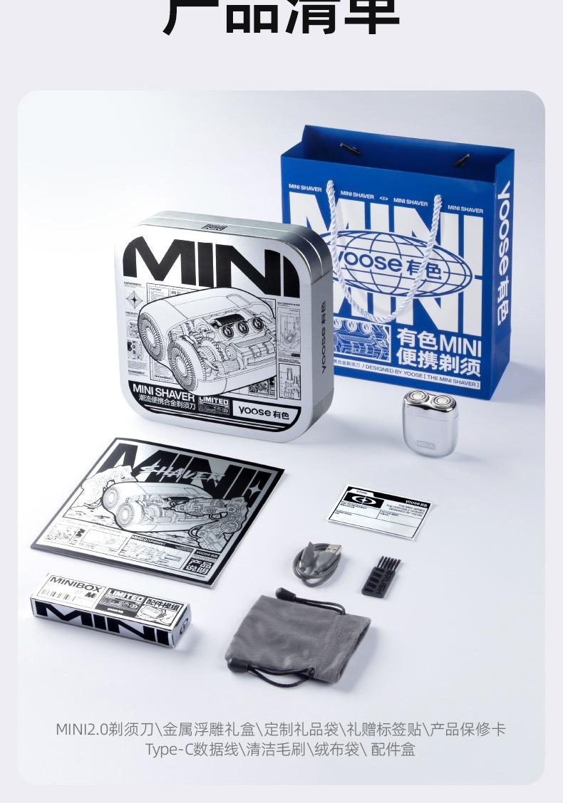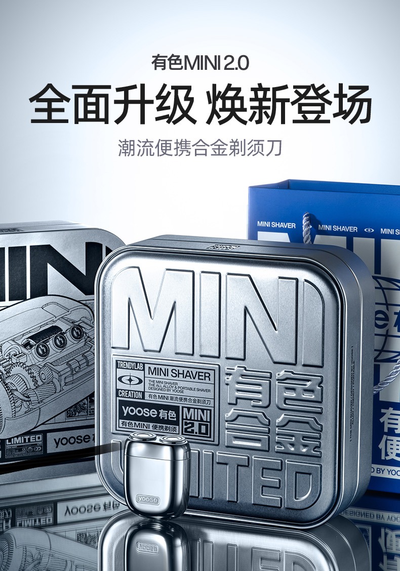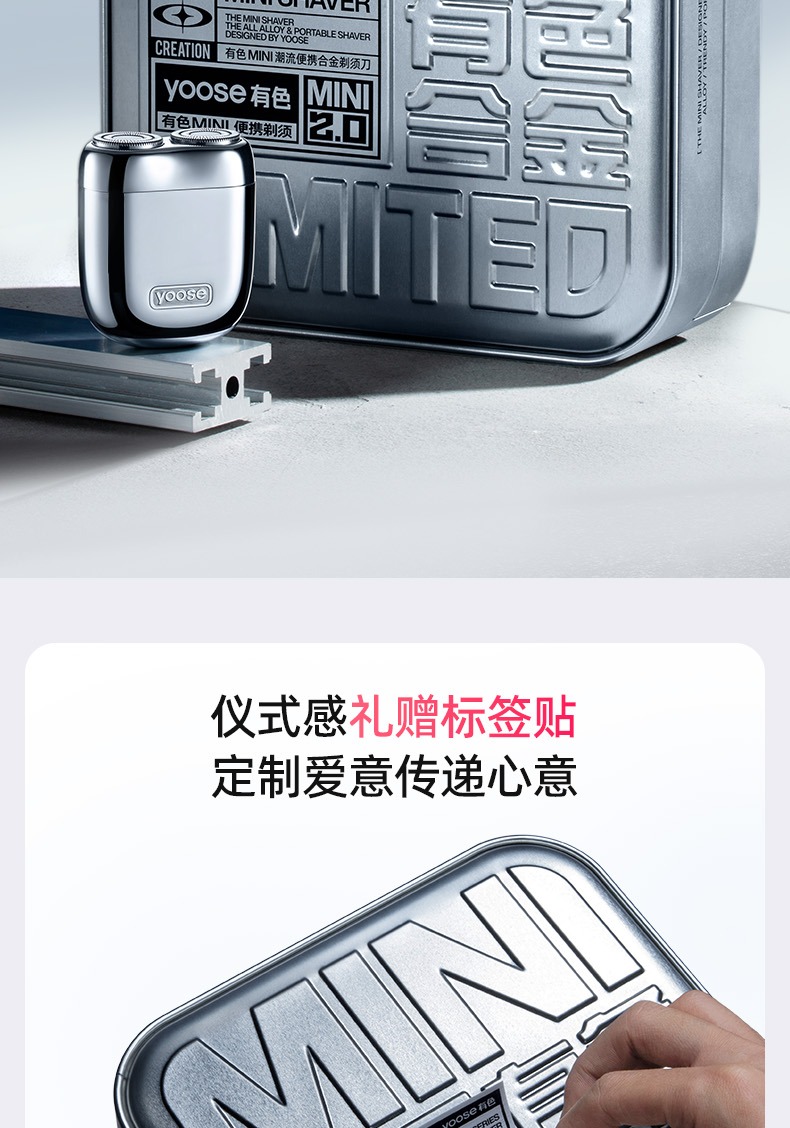 Yoose/有色 mini 2.0电动剃须刀 迷你便携款 男士刮胡刀 合金机身 生日礼物送男友