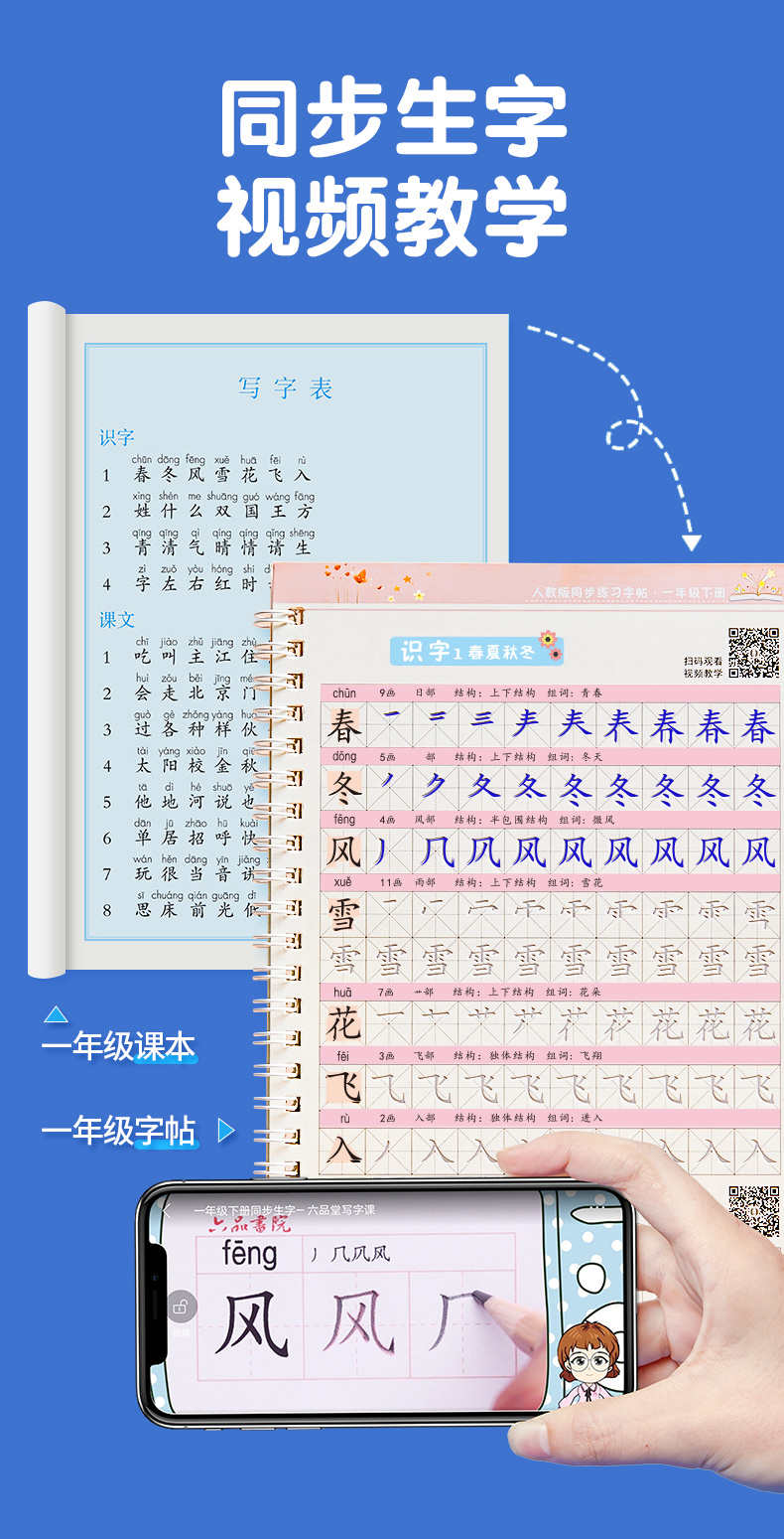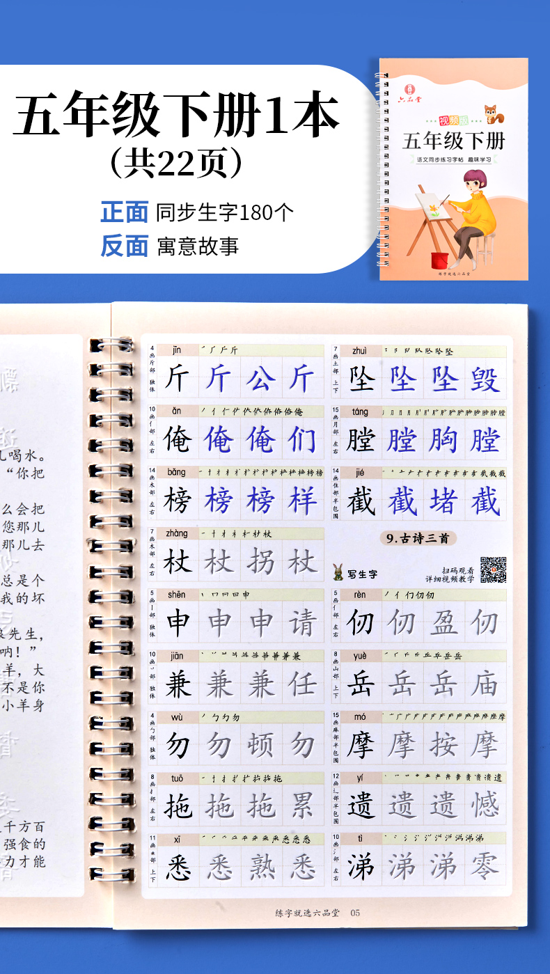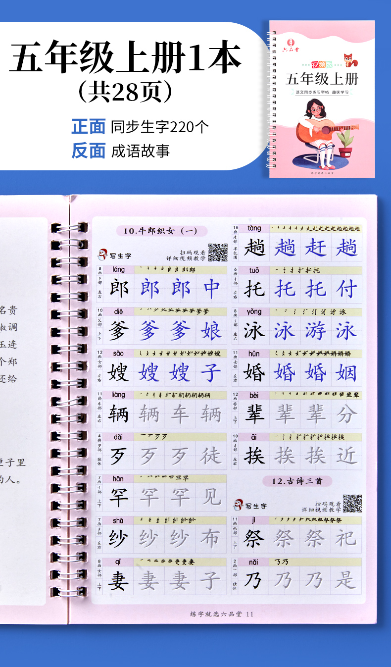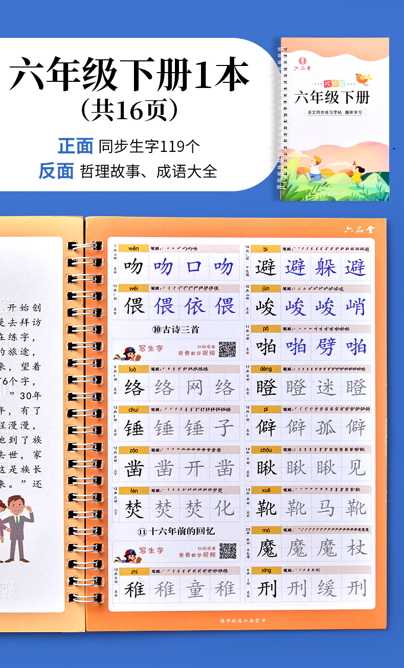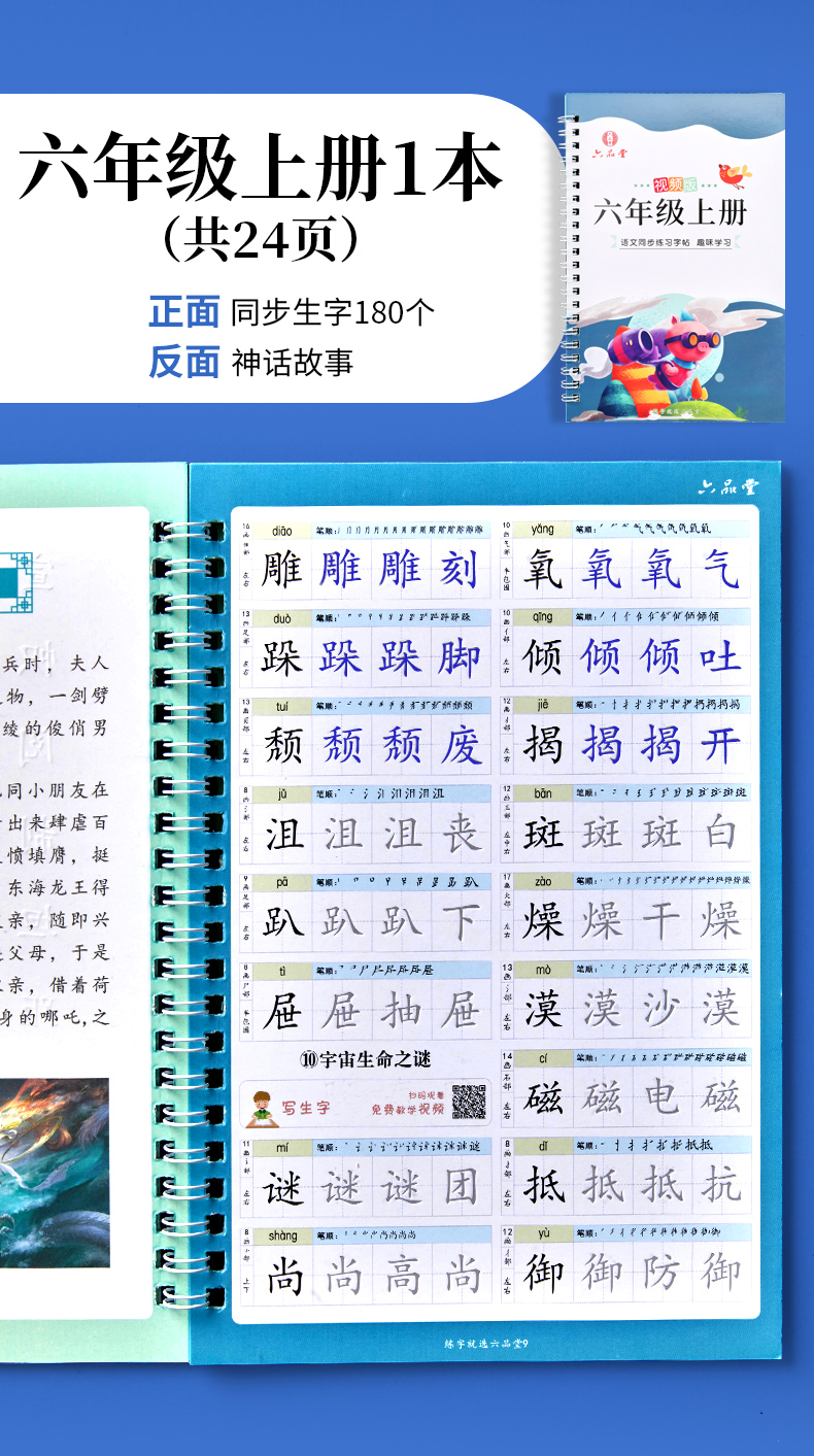 六品堂练字帖1-6年级凹槽字贴lztycl4678