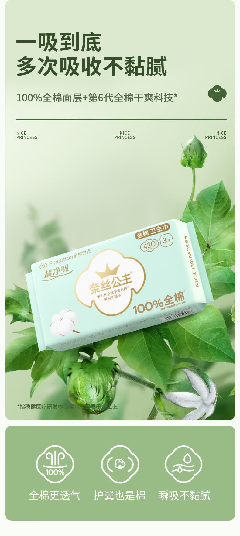 全棉时代奈丝公主超净吸系列卫生巾 420mm 3片*36包