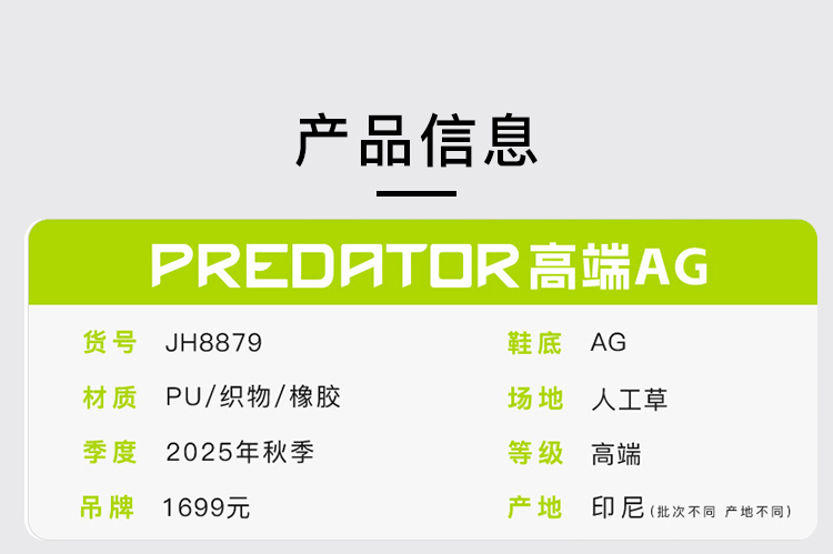 小李子ADIDAS阿迪达斯猎鹰PREDATOR高端AG短钉足球鞋成人男JH8879