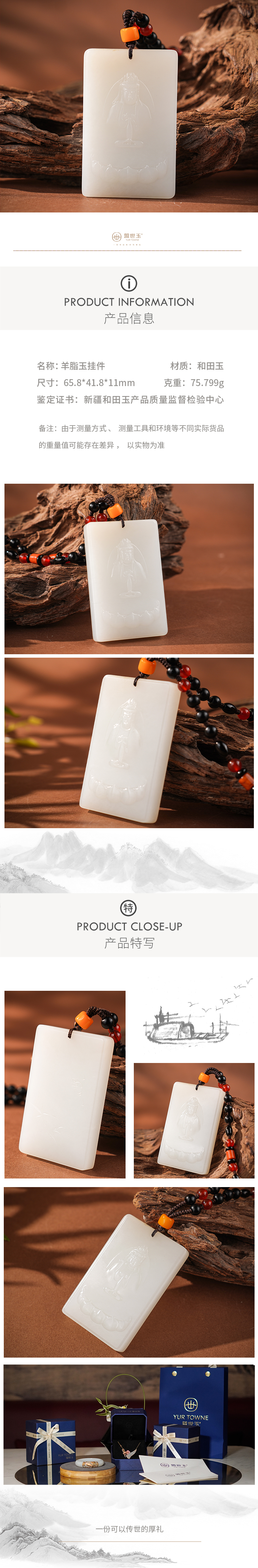 「年礼优选」【鹤云杉】羊脂白玉仙境山水牌
