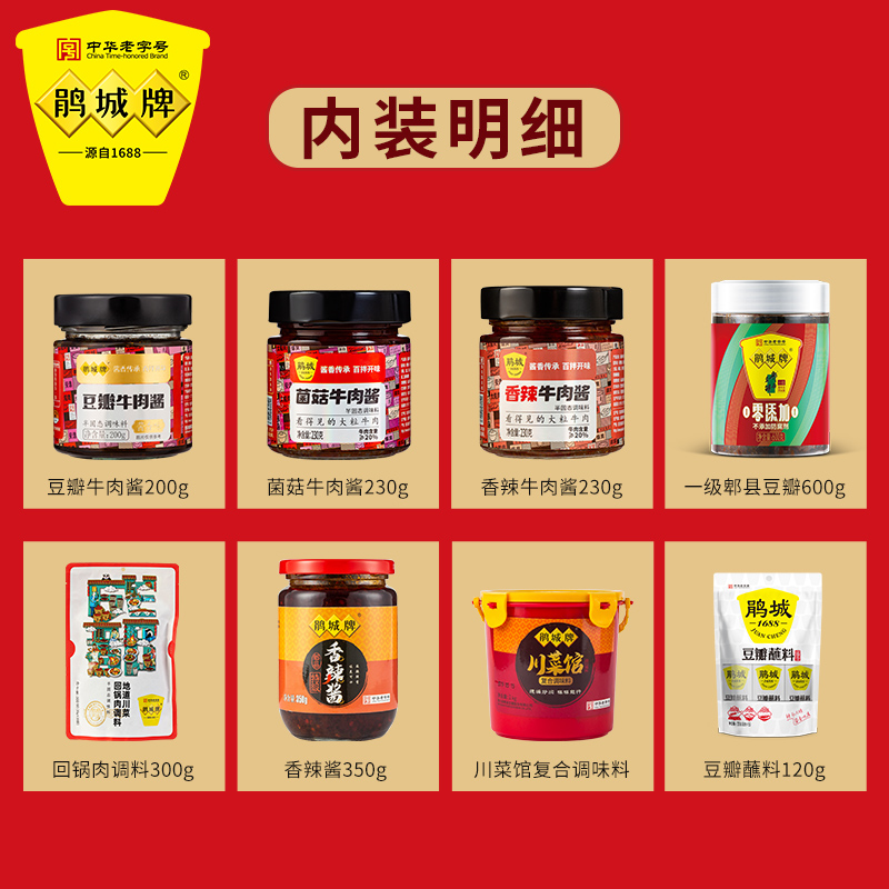 “鹃城牌“郫县豆瓣,中华老字号企业,源于1688年,国有控股公司,郫县豆瓣行业龙头企业和行业标准化生产示范工厂,中国非物质文化遗产郫县豆瓣传统制作技艺传承企业。 获“中华老字号”、“中国非物质文化遗产