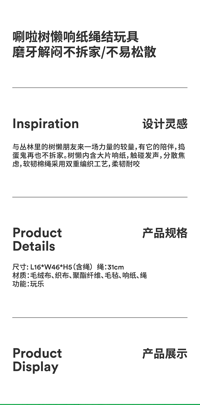 zeze唰啦树懒响纸绳结玩具-B (包邮)