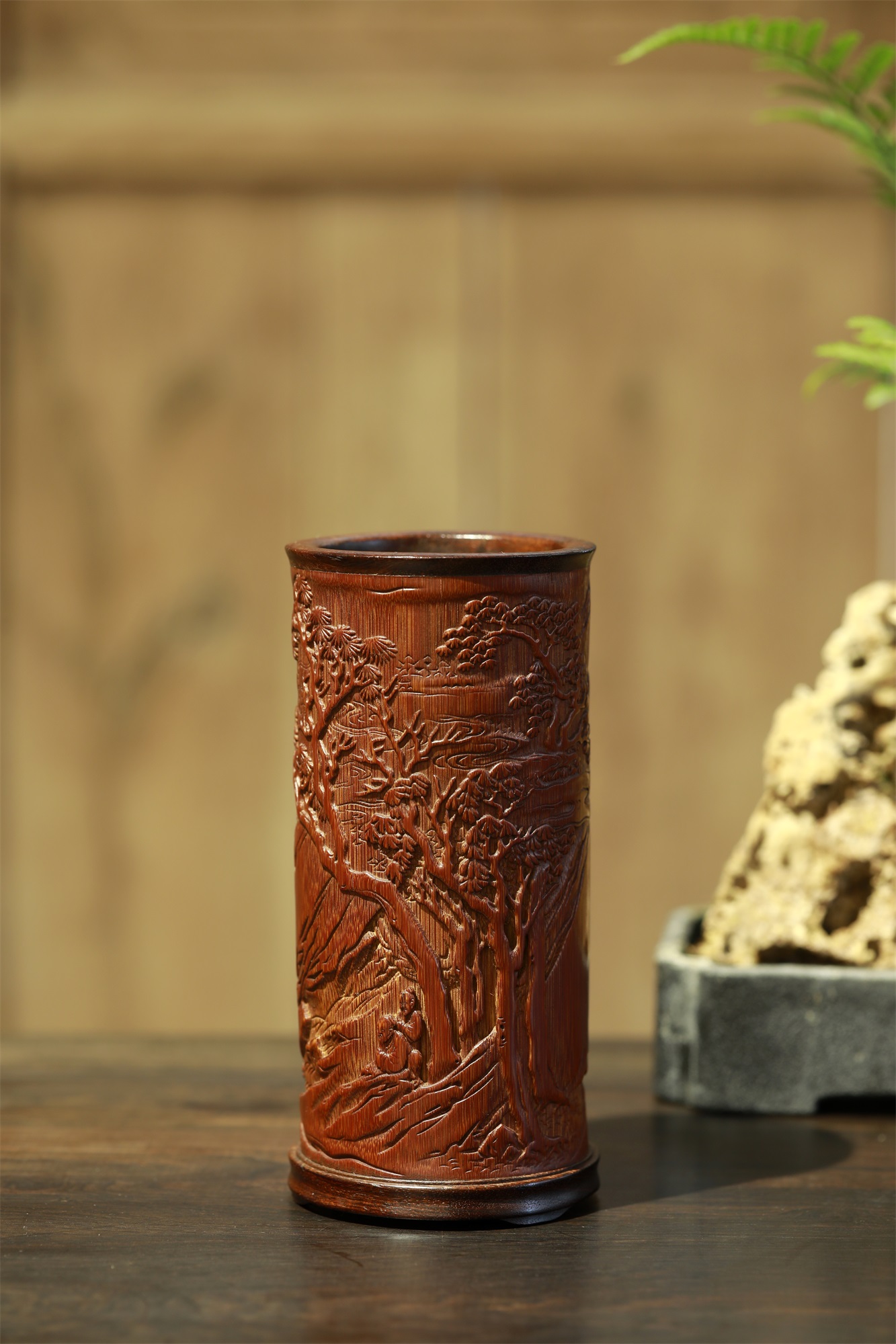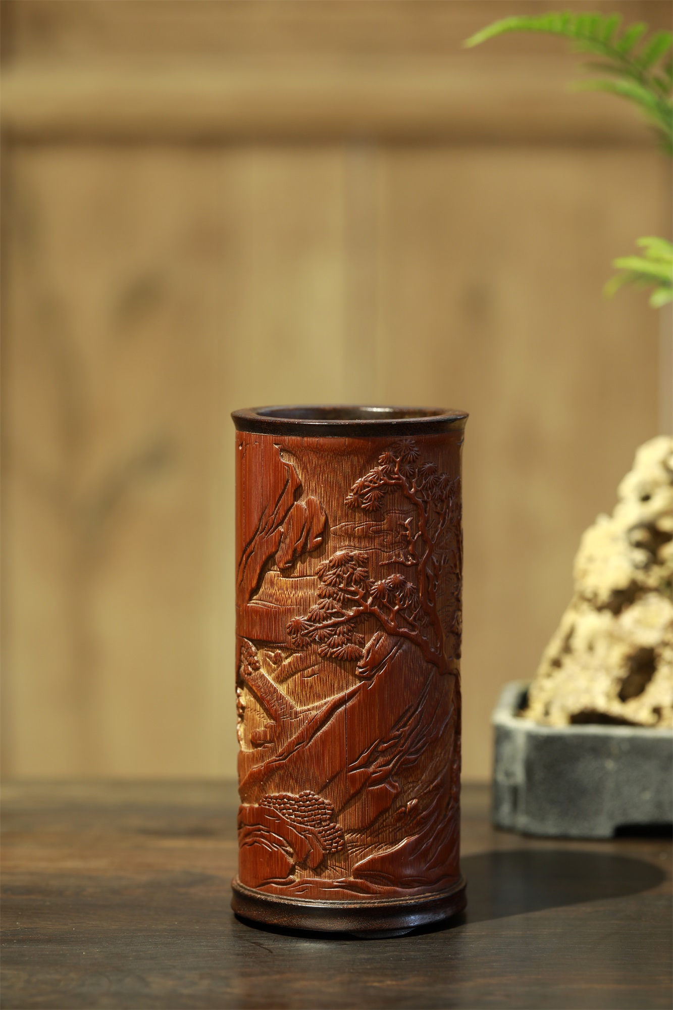 名称:山行诗°竹雕笔筒