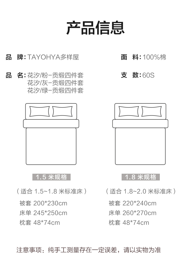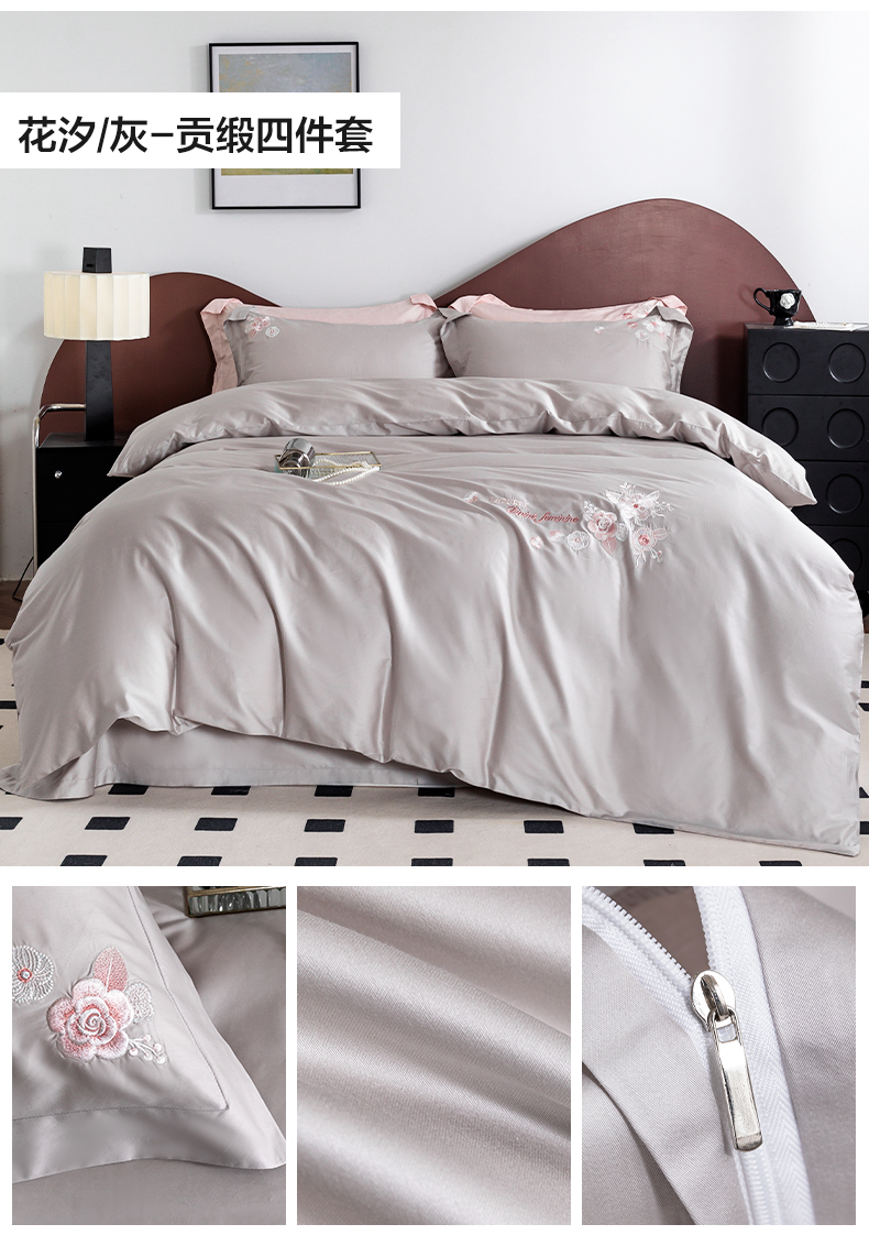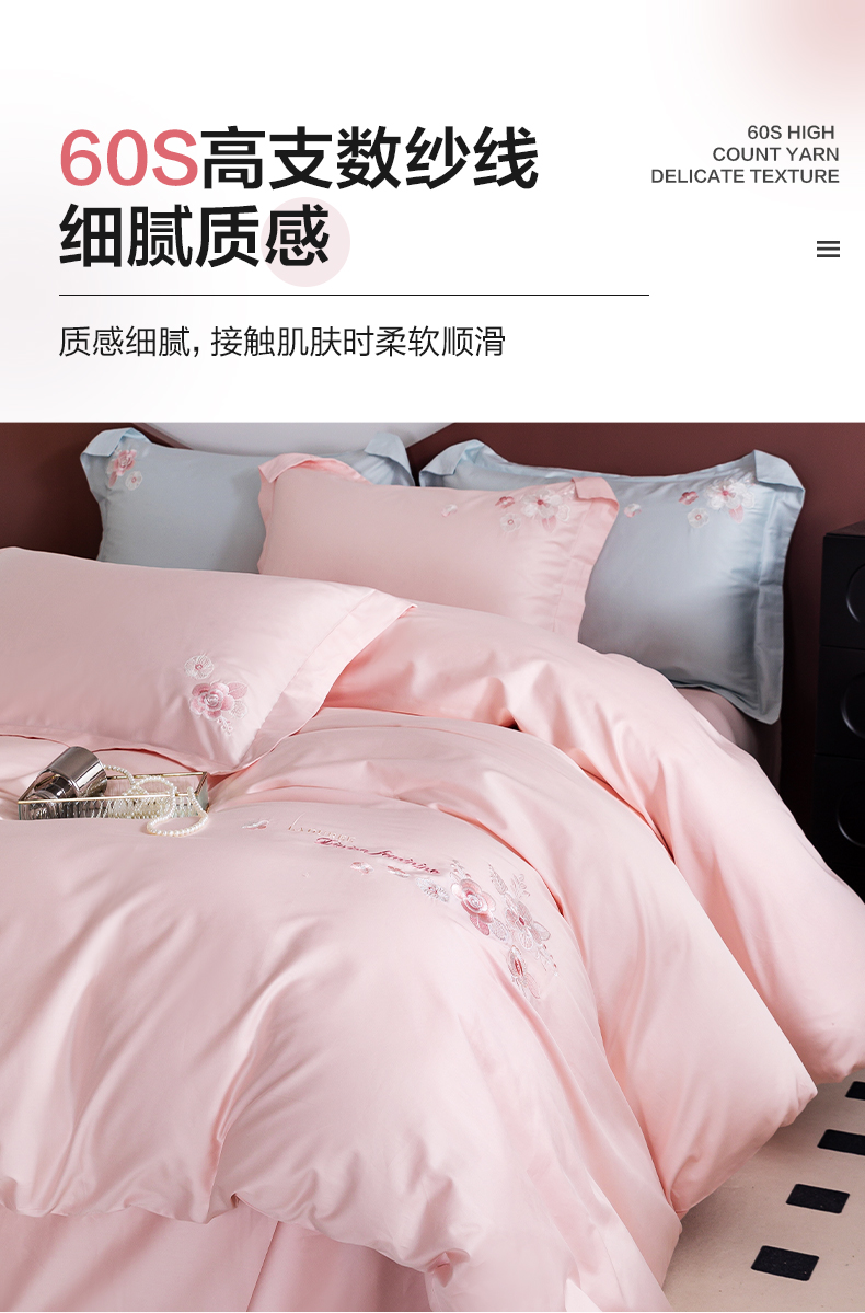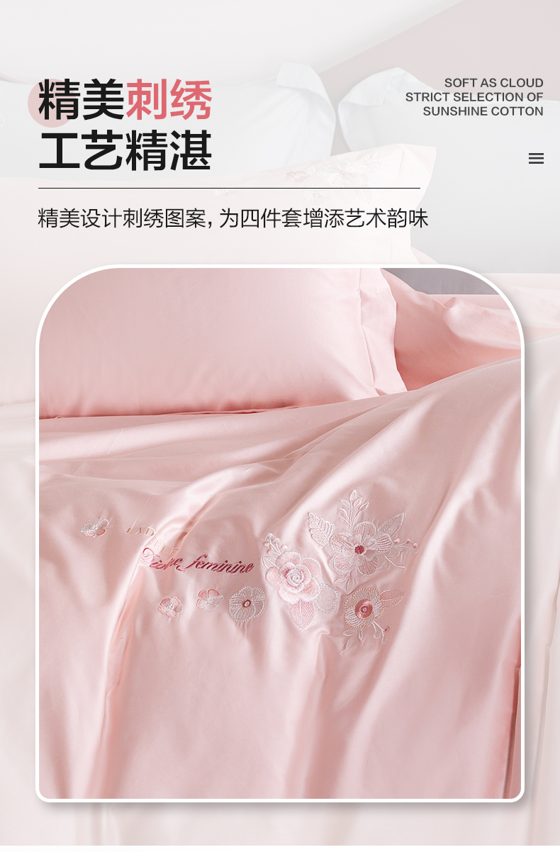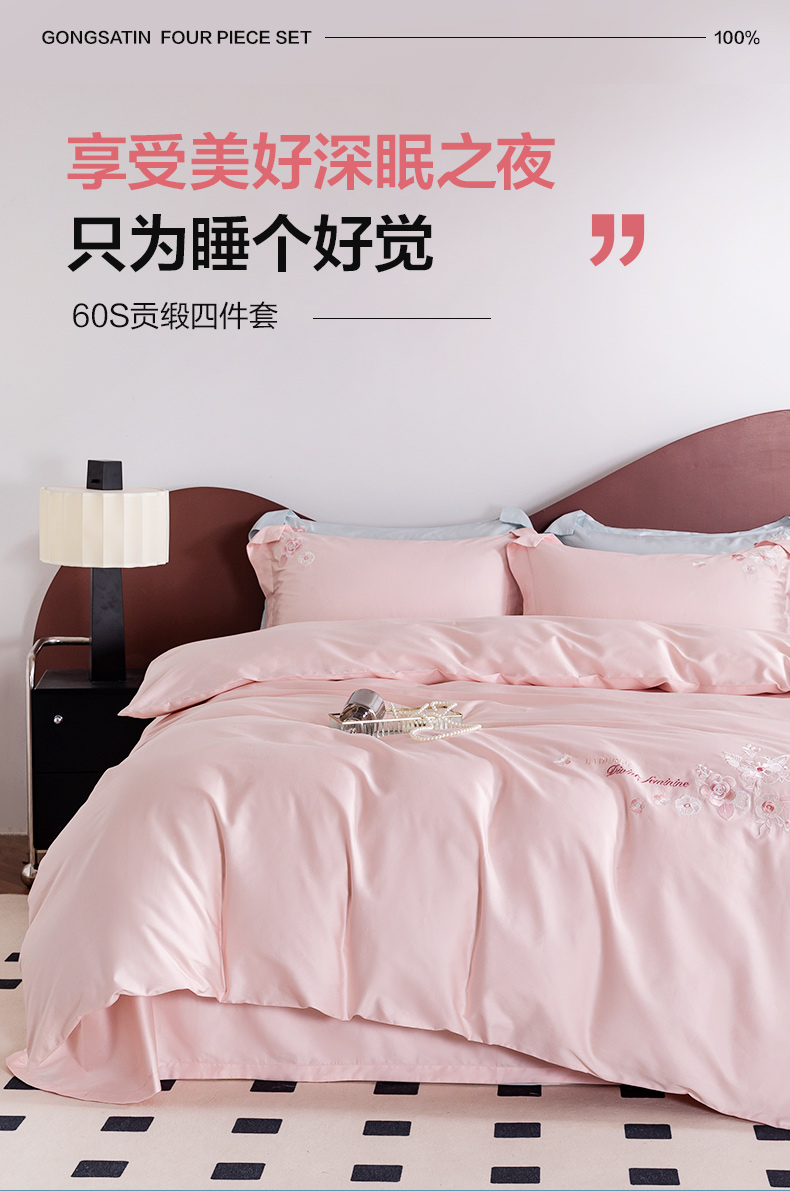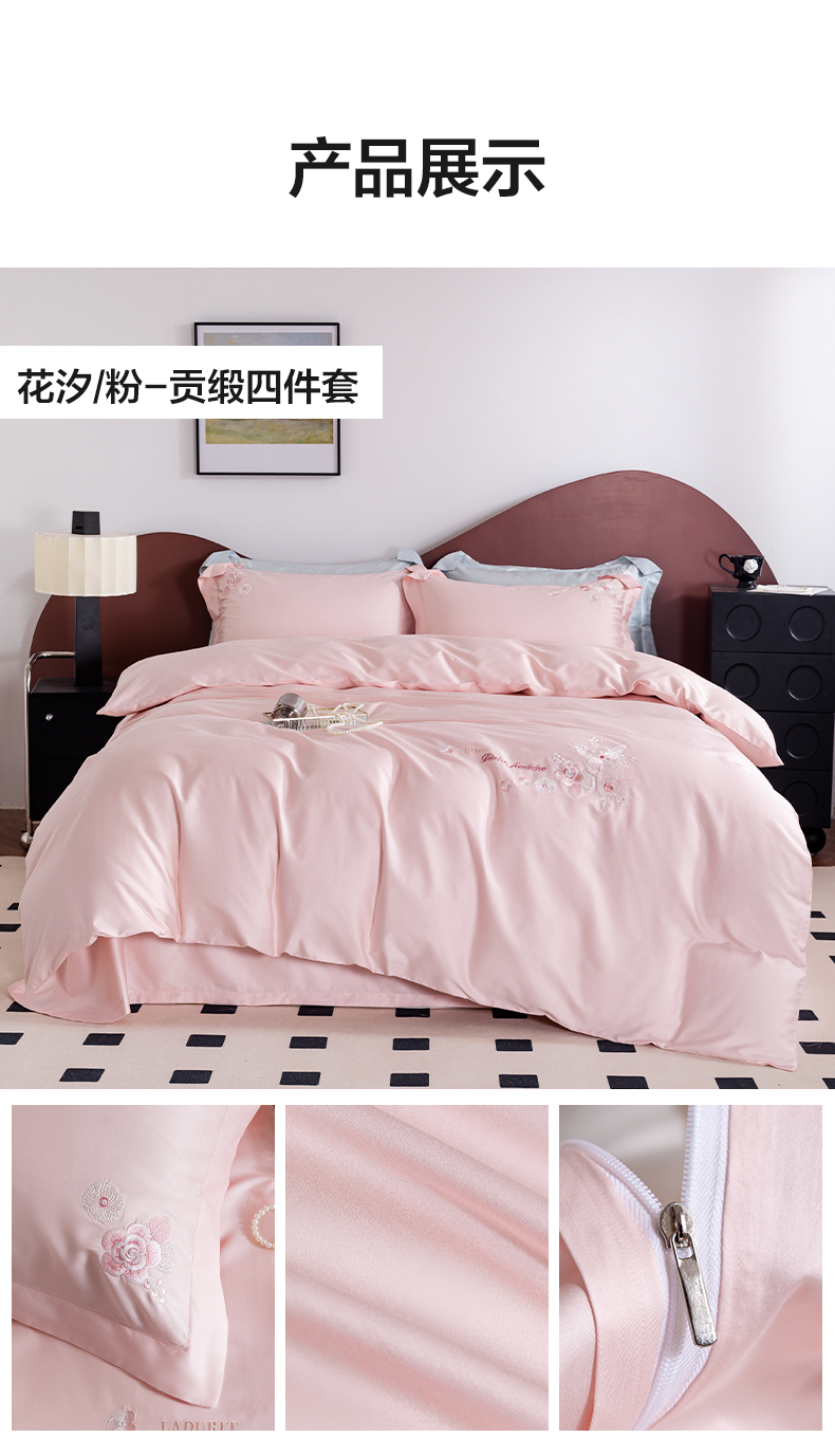 【多样屋专柜】多样屋花汐/粉-贡缎全棉四件套新款床上用品床单被套