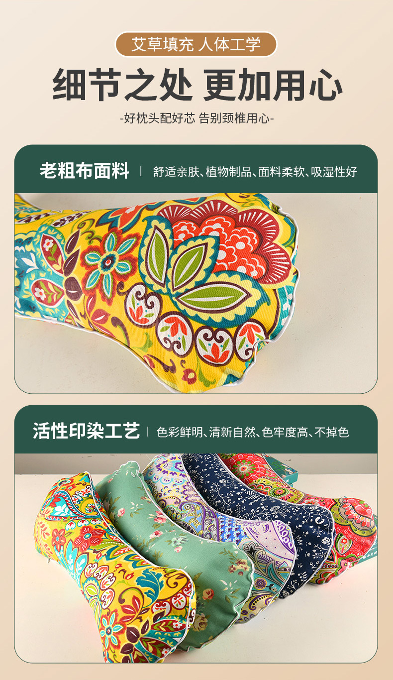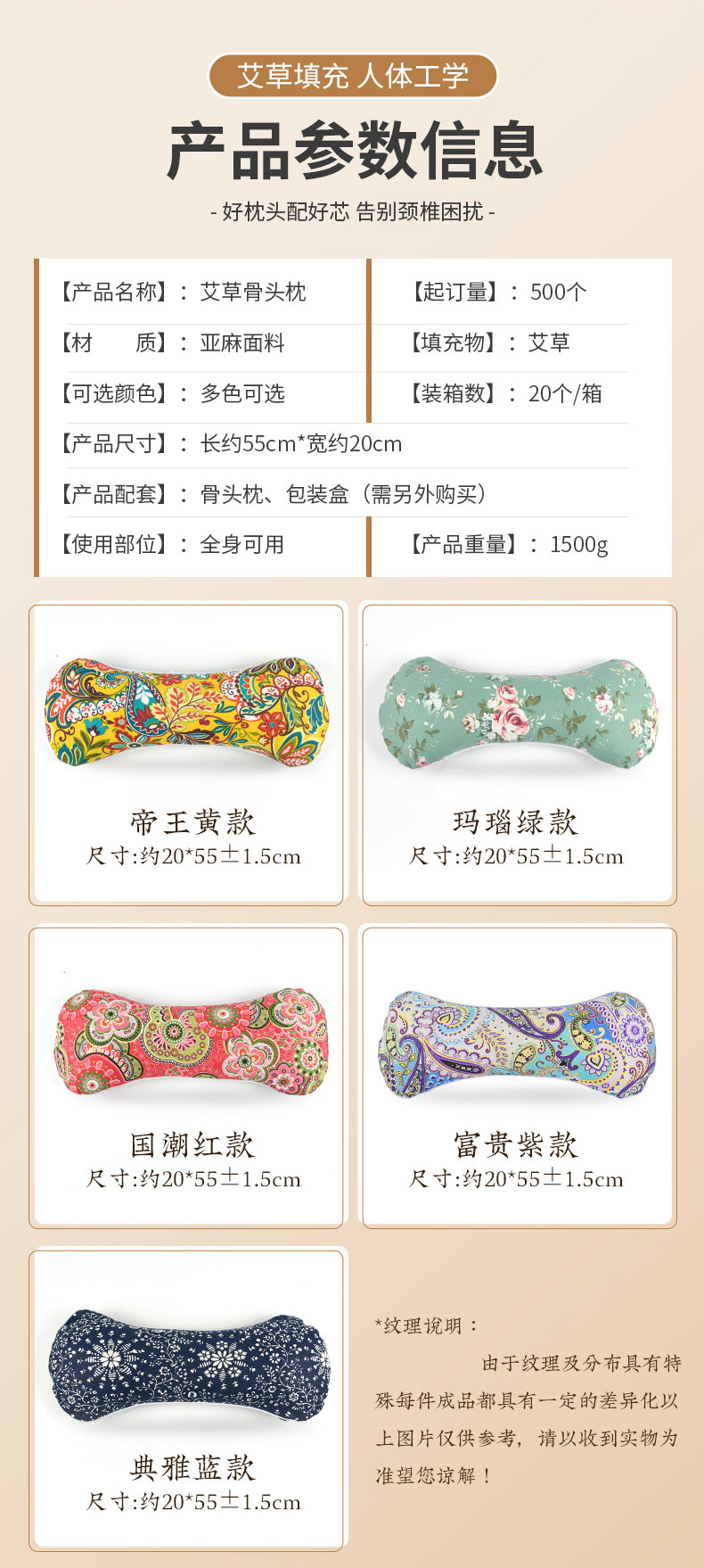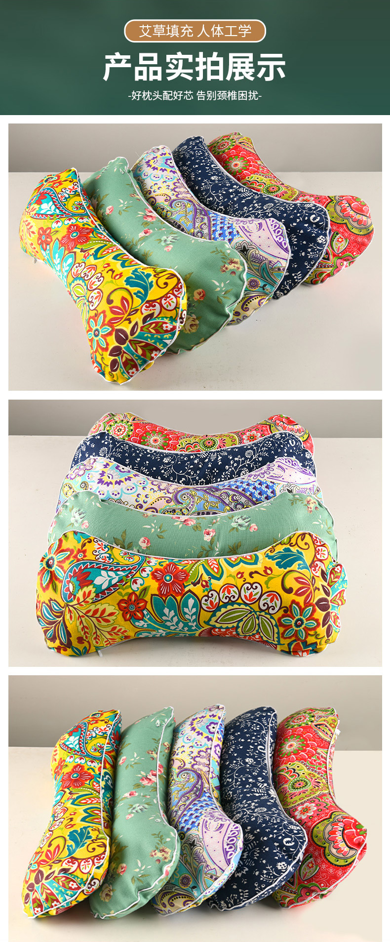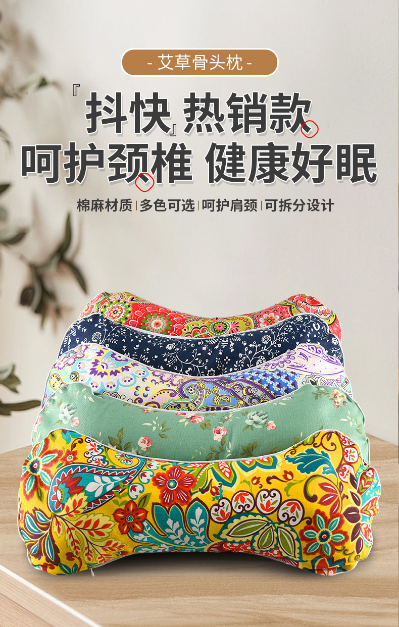 艾草枕头颈椎骨头枕批发家用粗布艾绒枕艾枕宫廷枕护颈艾草骨头枕