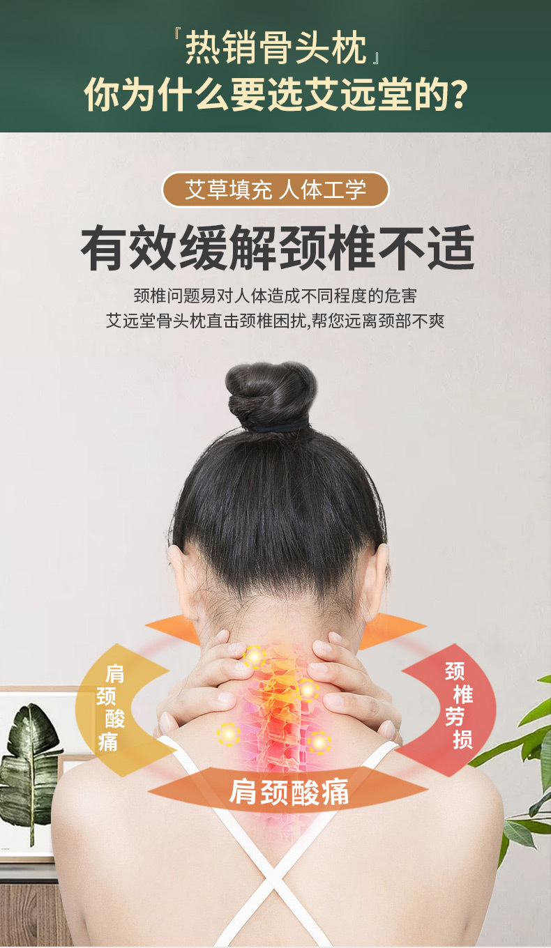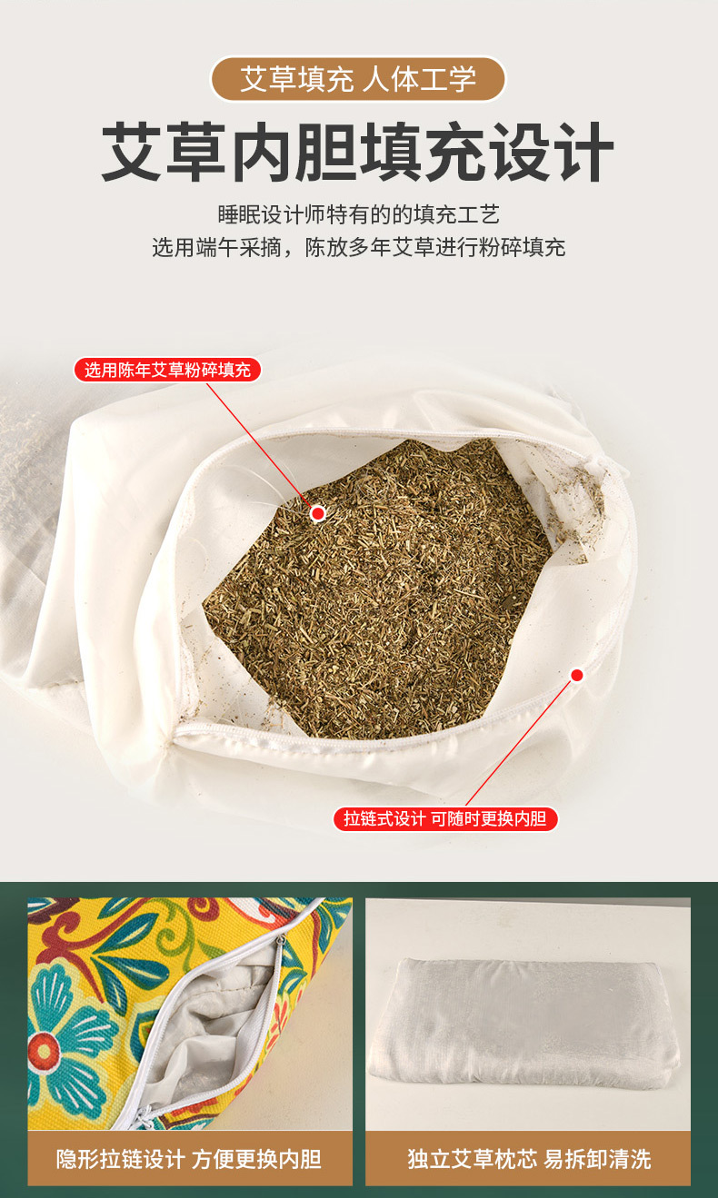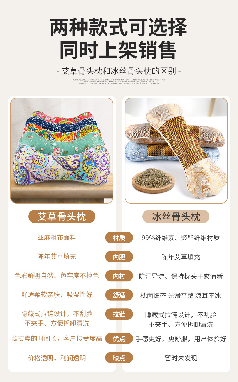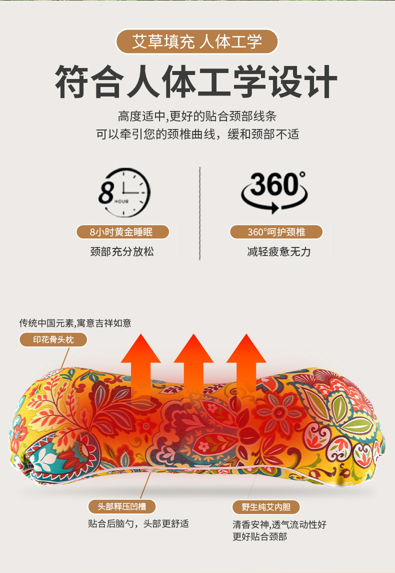 艾草枕头颈椎骨头枕批发家用粗布艾绒枕艾枕宫廷枕护颈艾草骨头枕