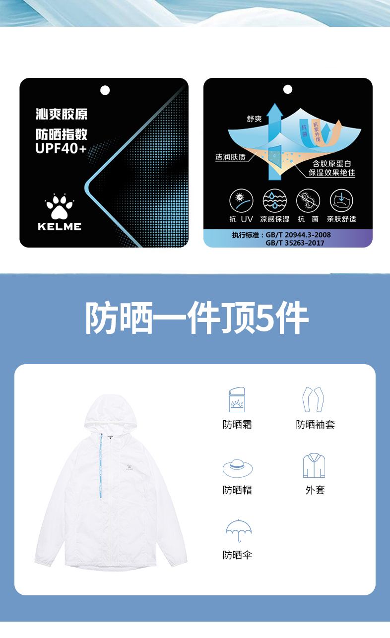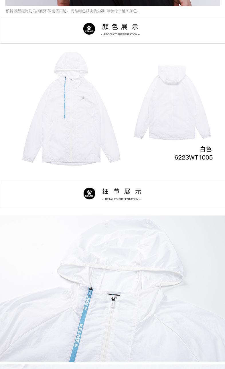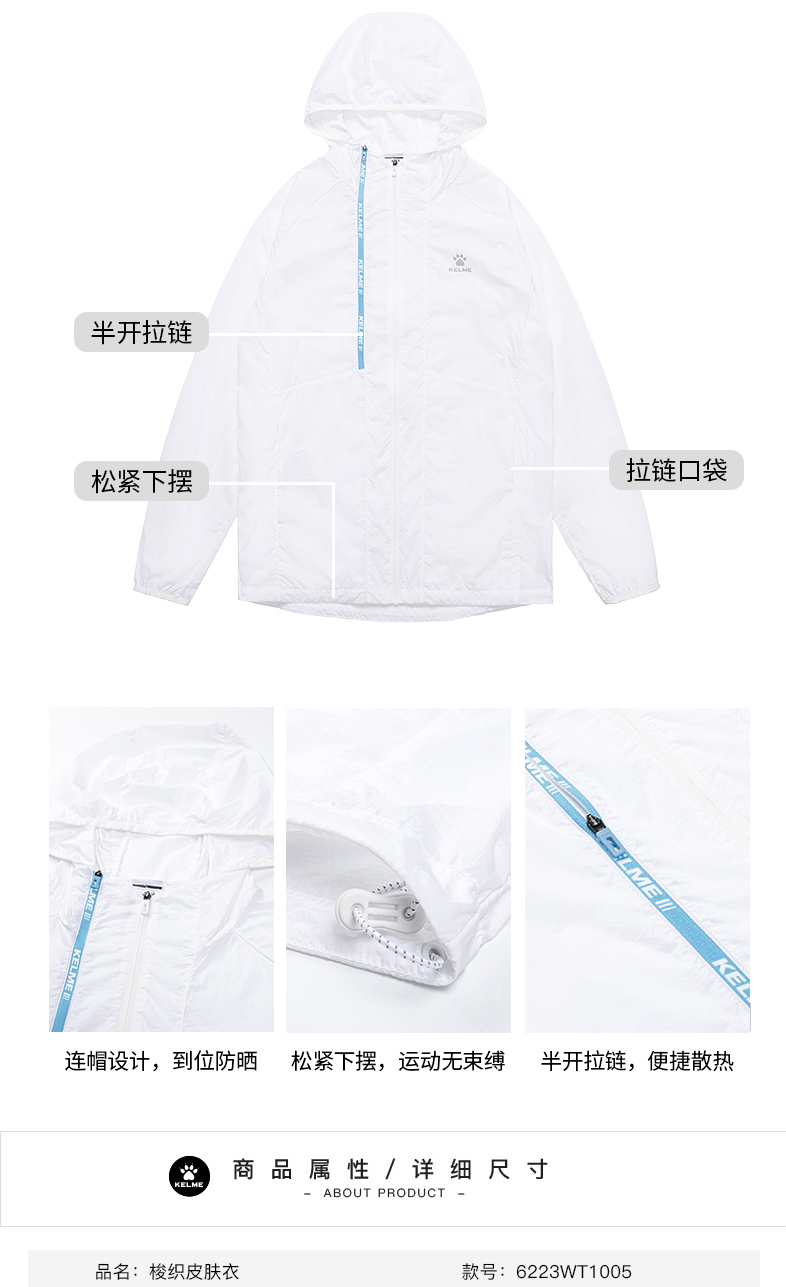 KELME卡尔美梭织皮肤衣男子2022夏季新款透气薄款连帽外套防晒服6223WT1005