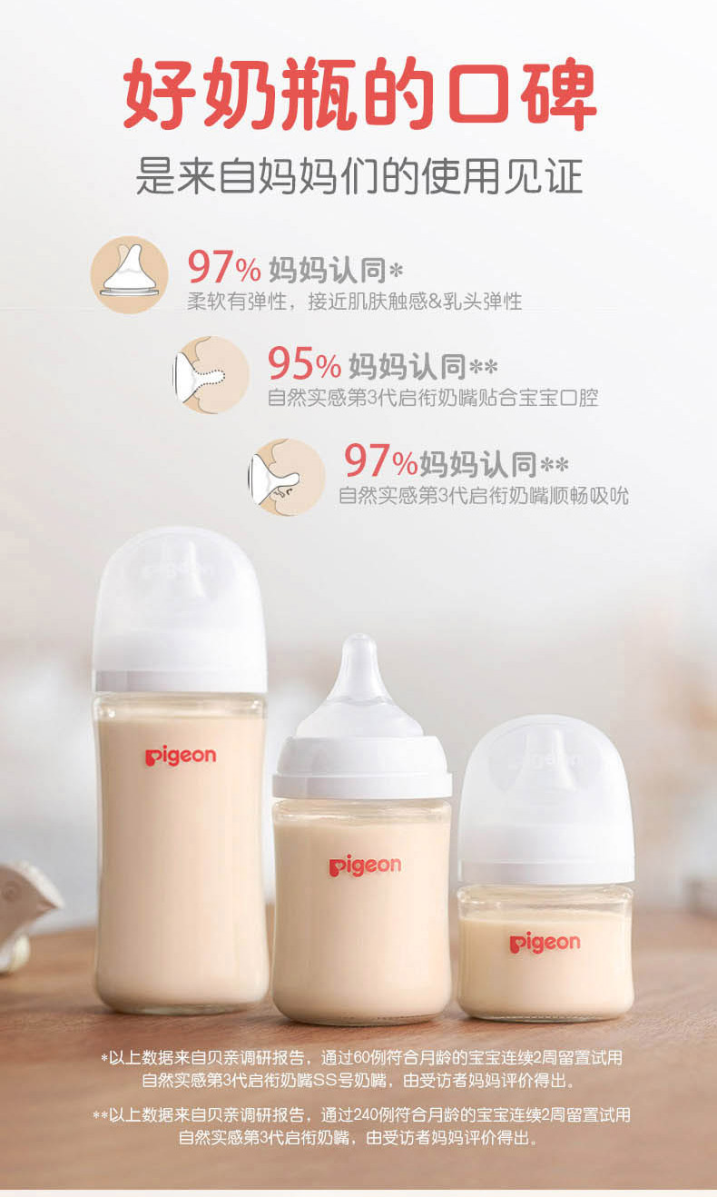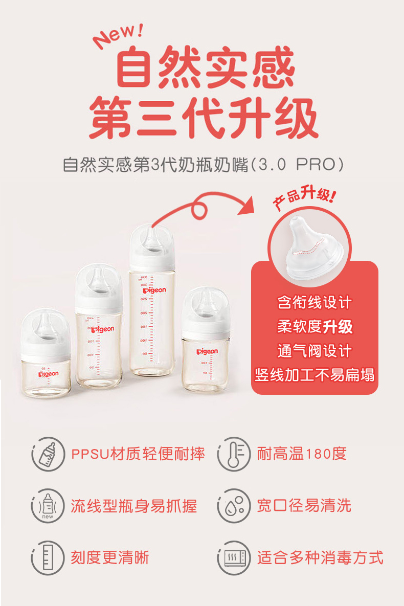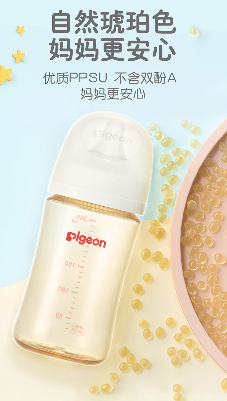 贝亲(Pigeon)奶瓶 自然实感第3代奶瓶 宽口径PPSU奶瓶