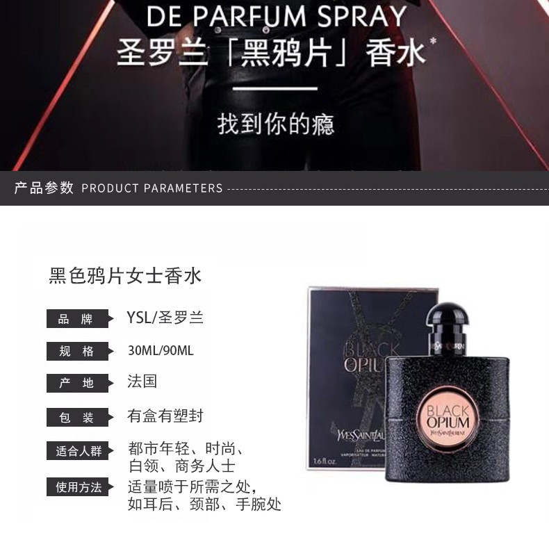 法国 YSL圣罗兰 BLACK OPIUM 黑鸦片不眠夜香水 30ML