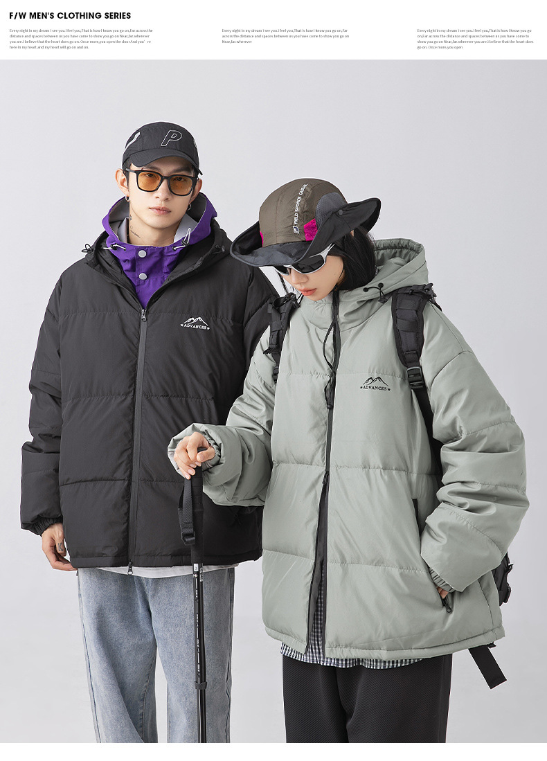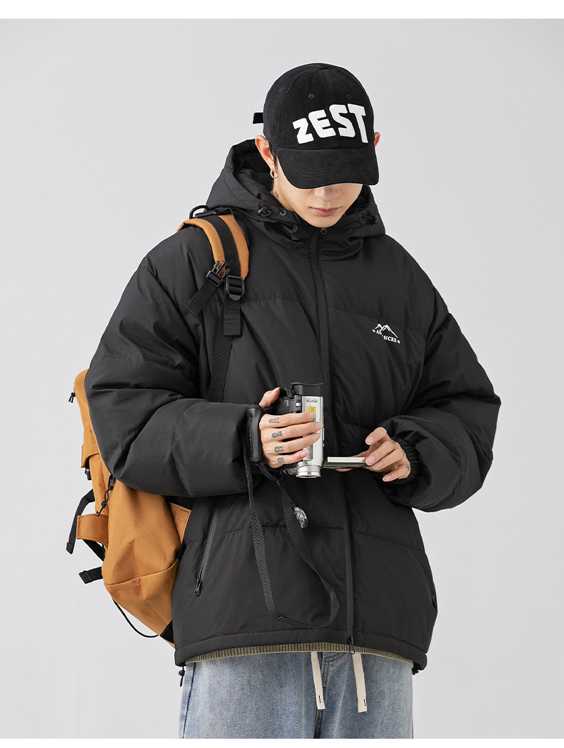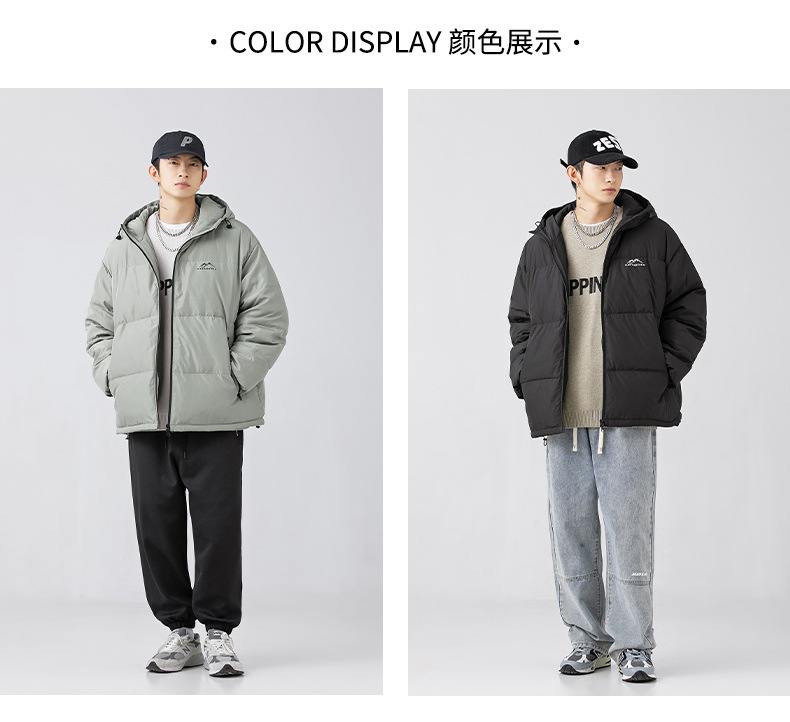 【春节不打烊】「两款配色!填充274g白鸭绒」韩路日系男装 2022年冬季新款羽绒服 男户外机能风连帽面包服外套上衣