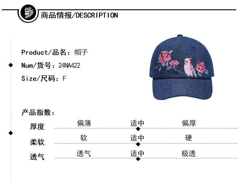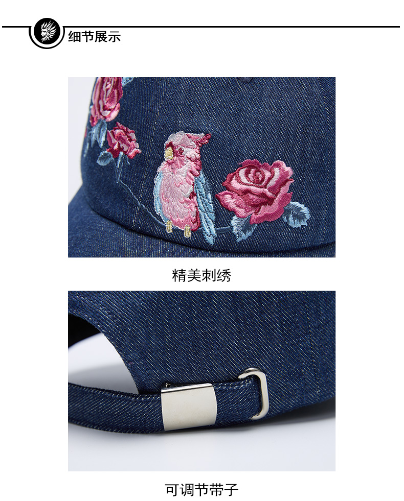 ONIARAI/鬼洗24春夏新品泥棒蓝玫瑰粉鹦鹉牛仔棒球帽中性 24NA422