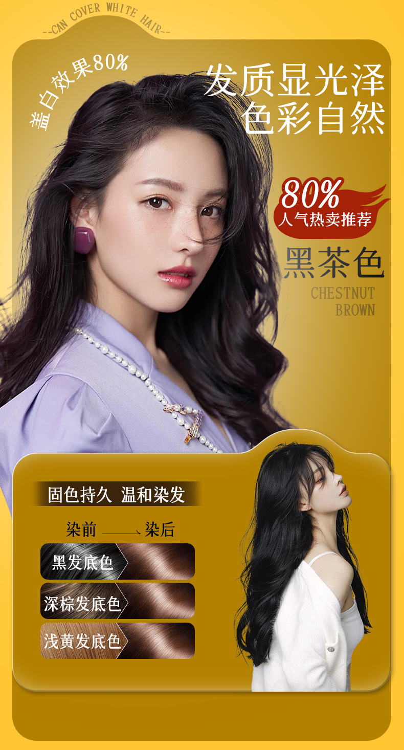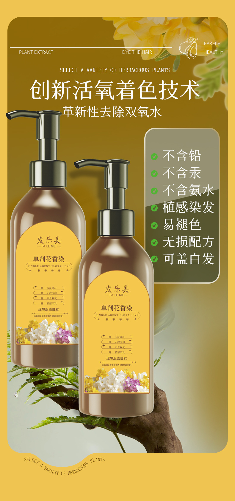 【速抢!1瓶送5包发膜!】发乐美单剂染发膏 植物不伤发盖白发染发剂 植物不染皮肤免漂自己染