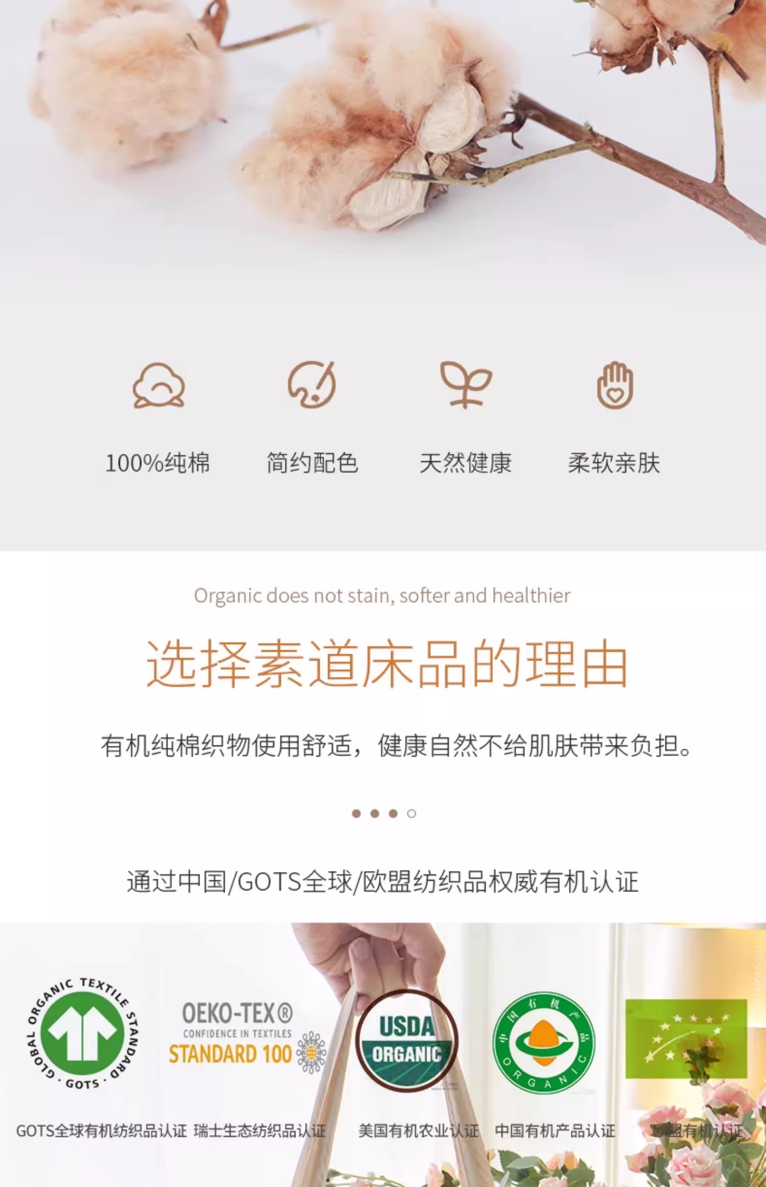 素道有机彩棉 床上四件套 三件套 床单 被套 双人床上用品【京东快递送货上门】