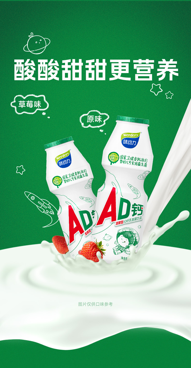 味动力AD钙奶营养饮品原味草莓味450mL*15瓶/箱