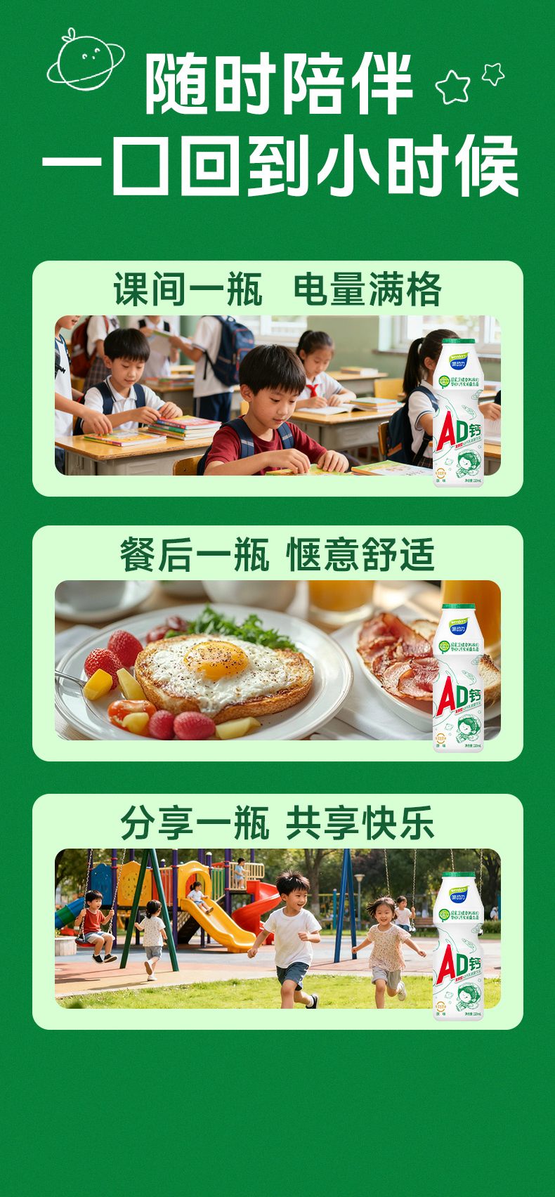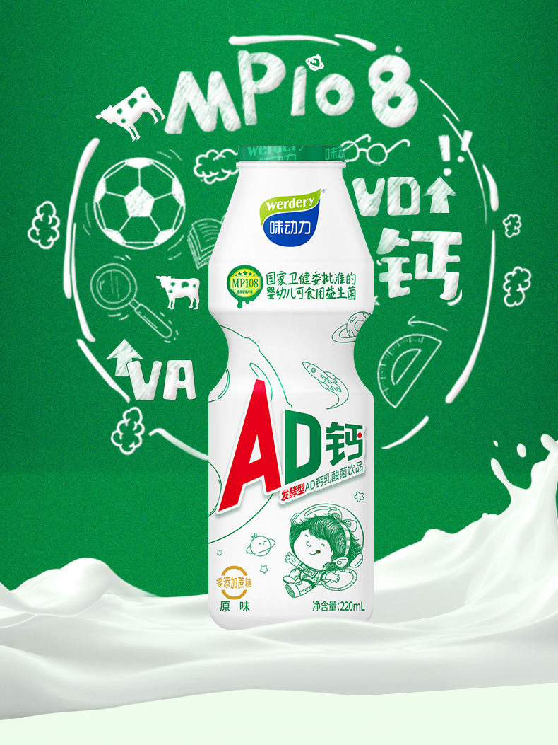 味动力AD钙奶营养饮品原味草莓味220mL*24瓶/箱