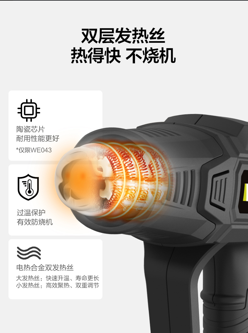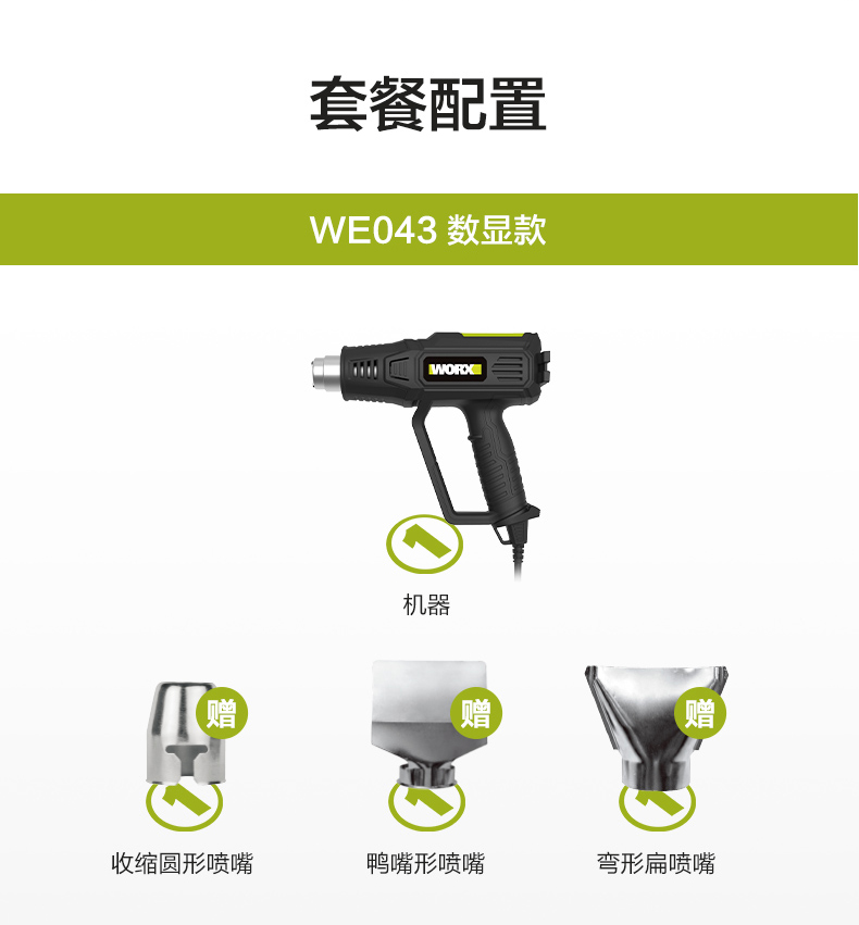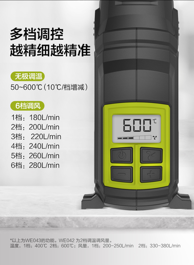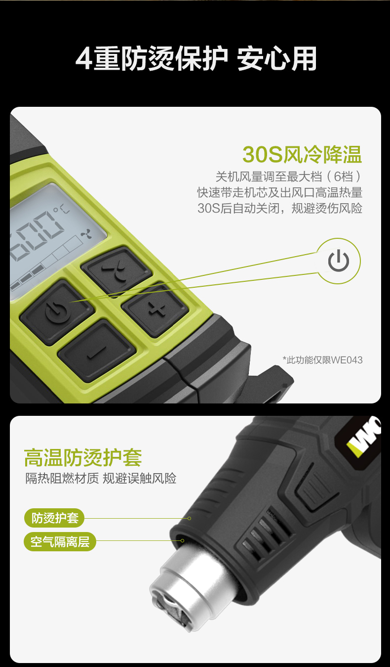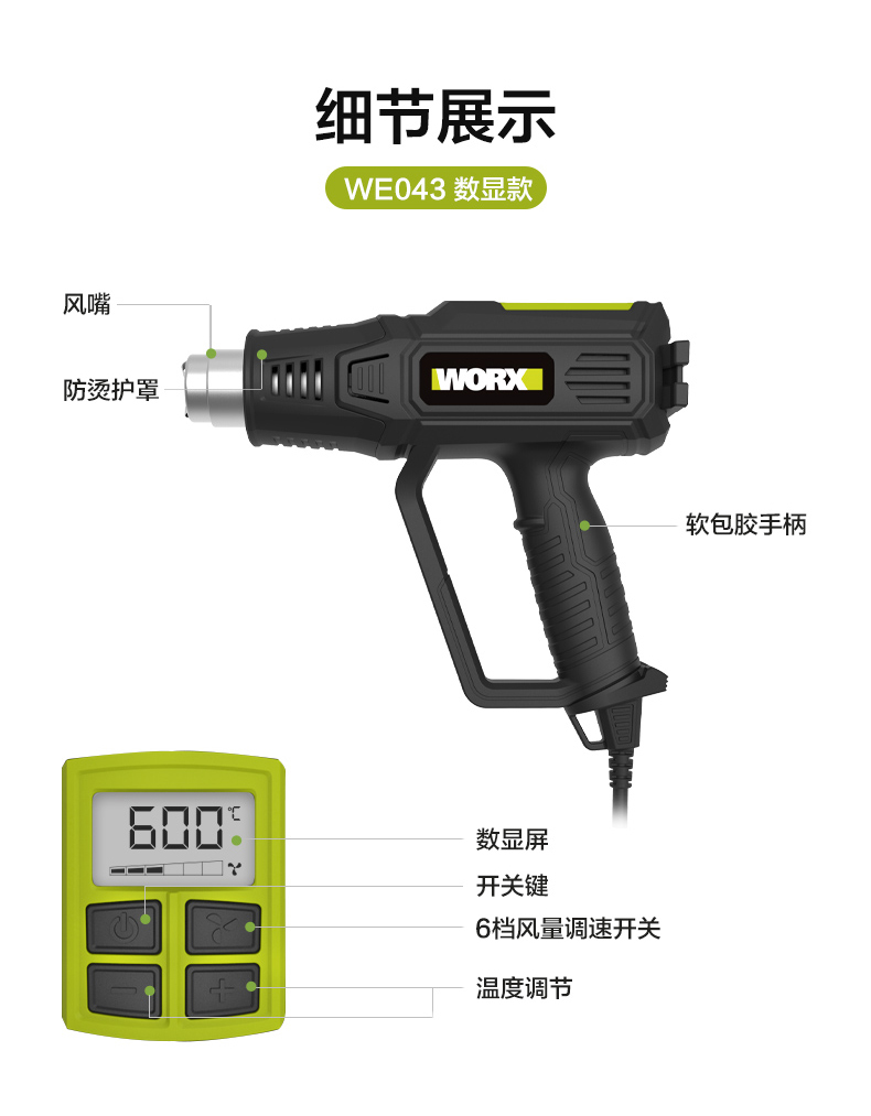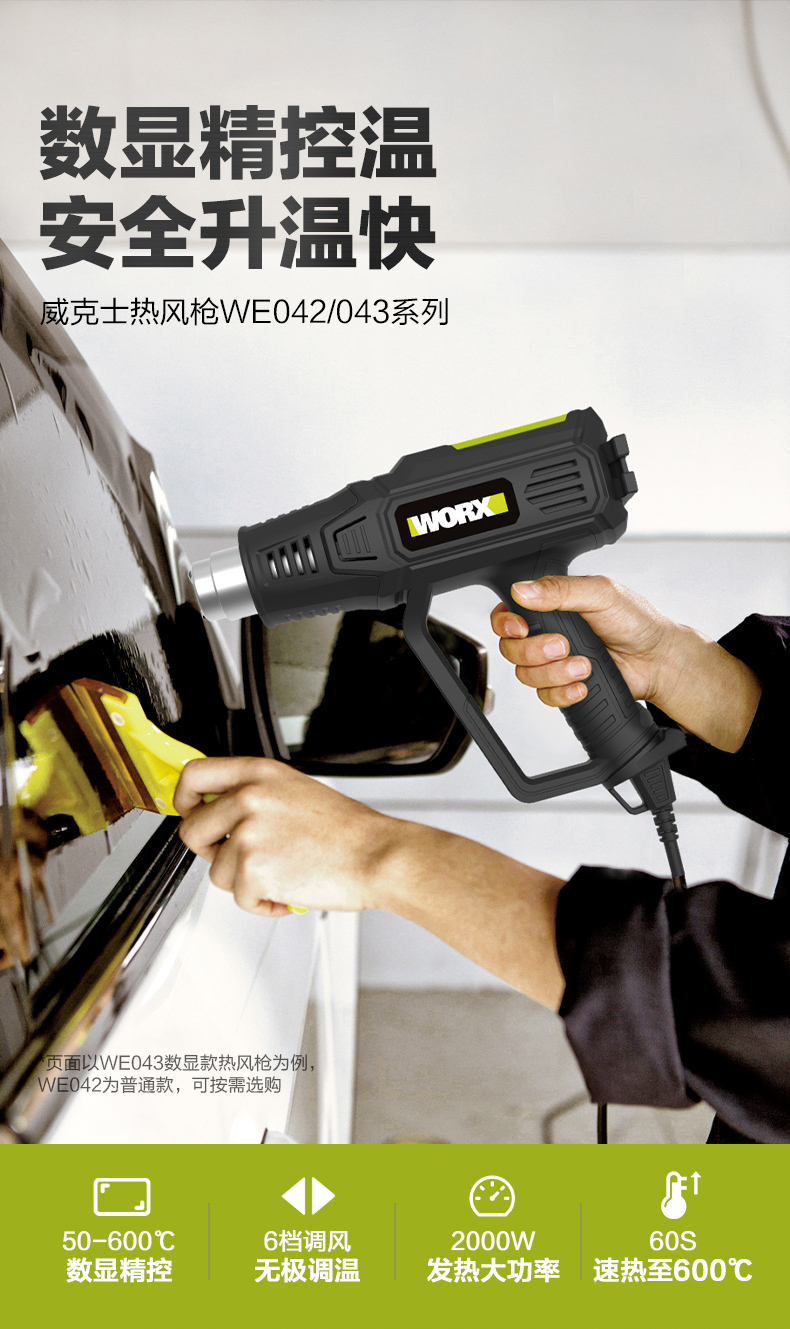 威克士2000W电气数显型热风枪WE043烤枪吹风枪工业烘枪热风机