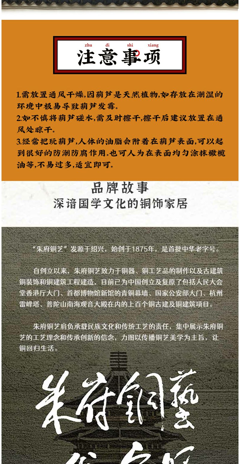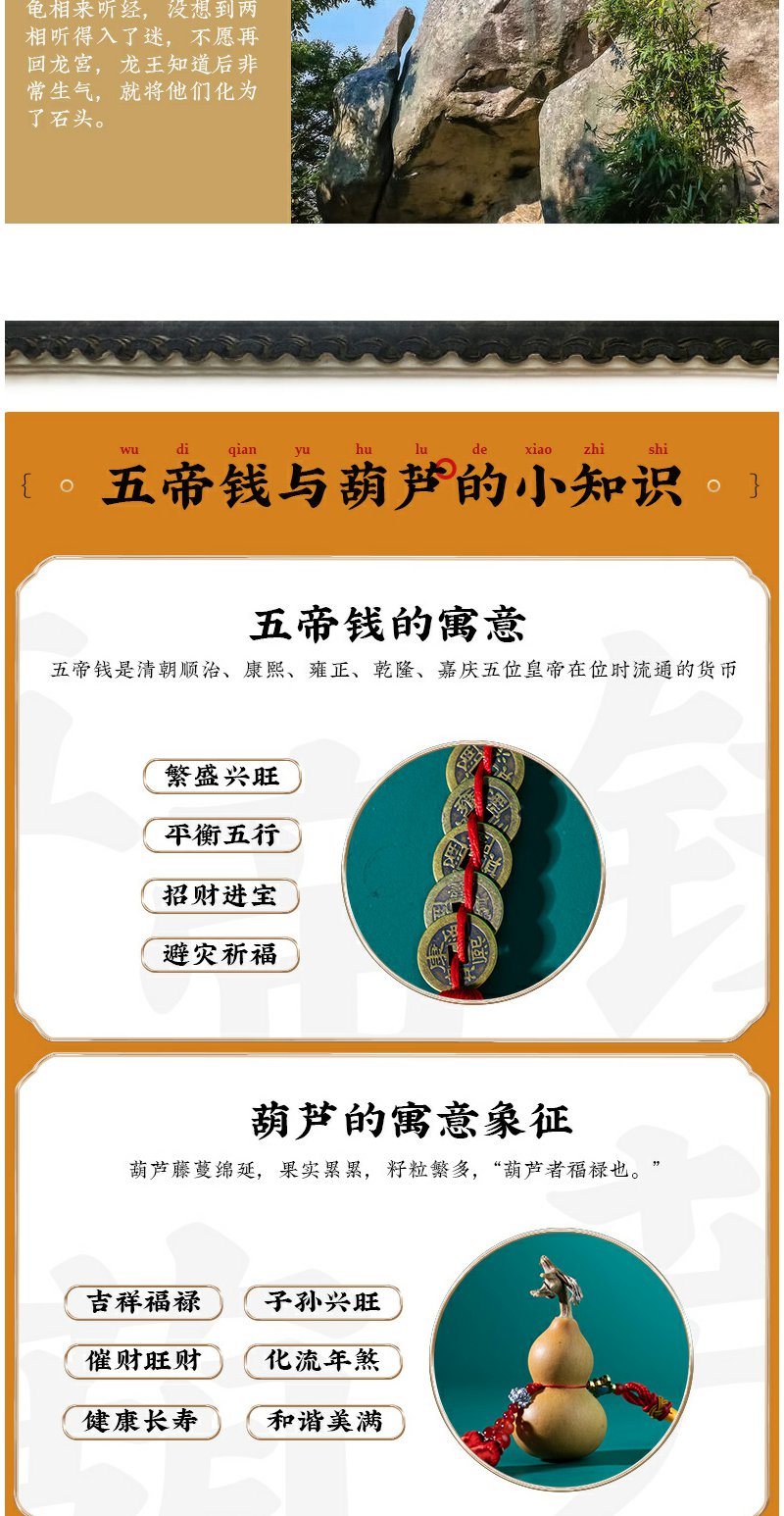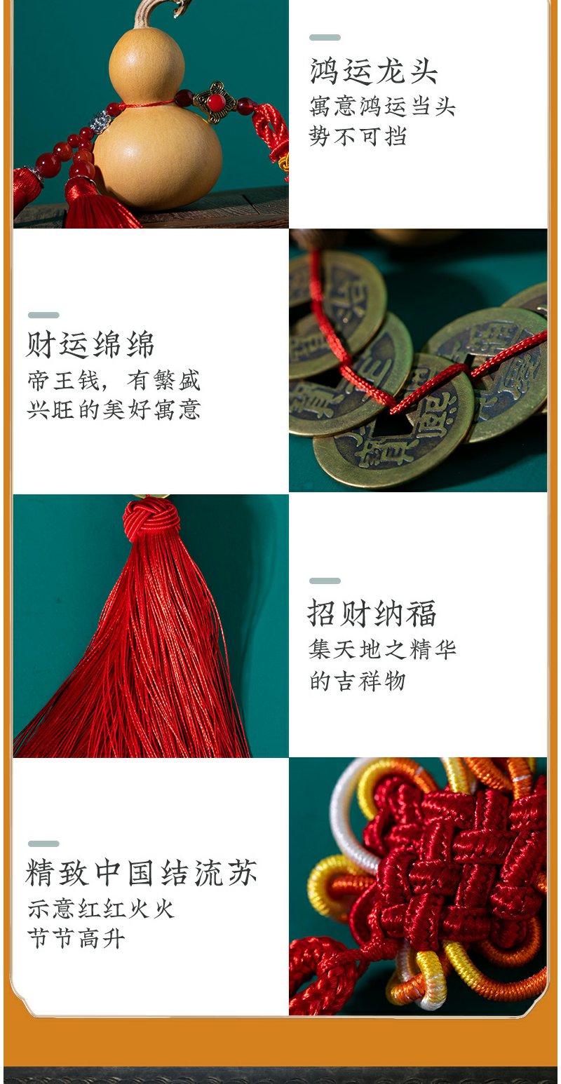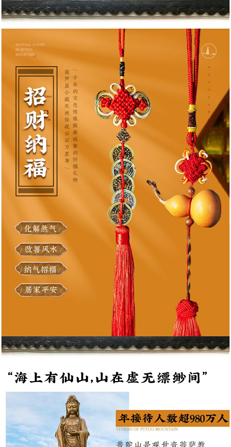 朱府铜艺普陀山系列纯天然葫芦、五帝钱挂件
