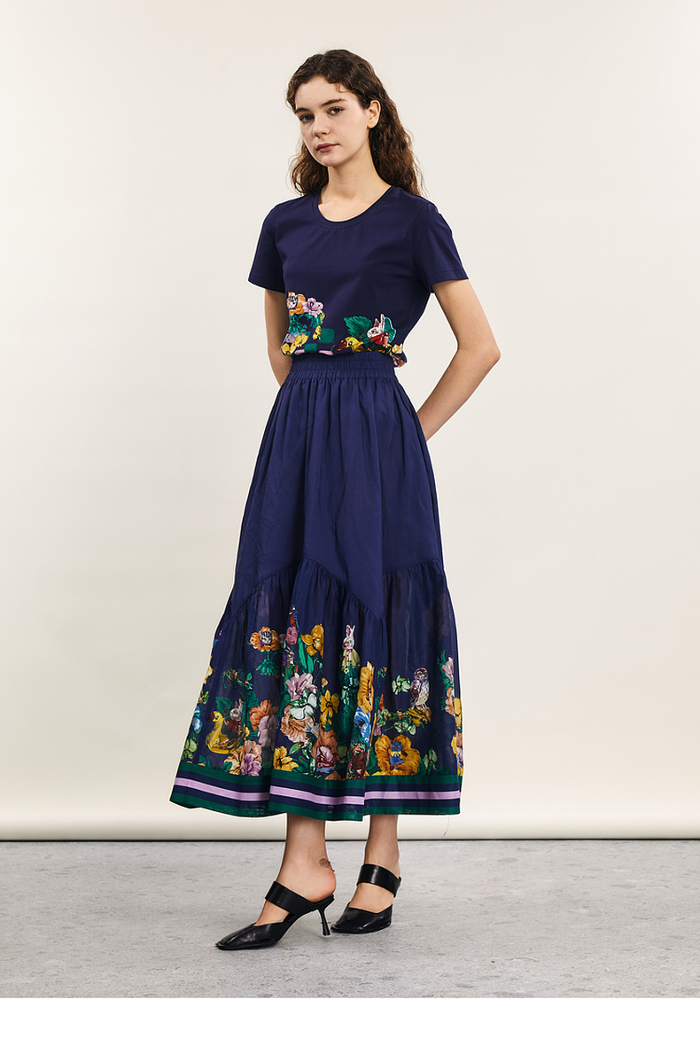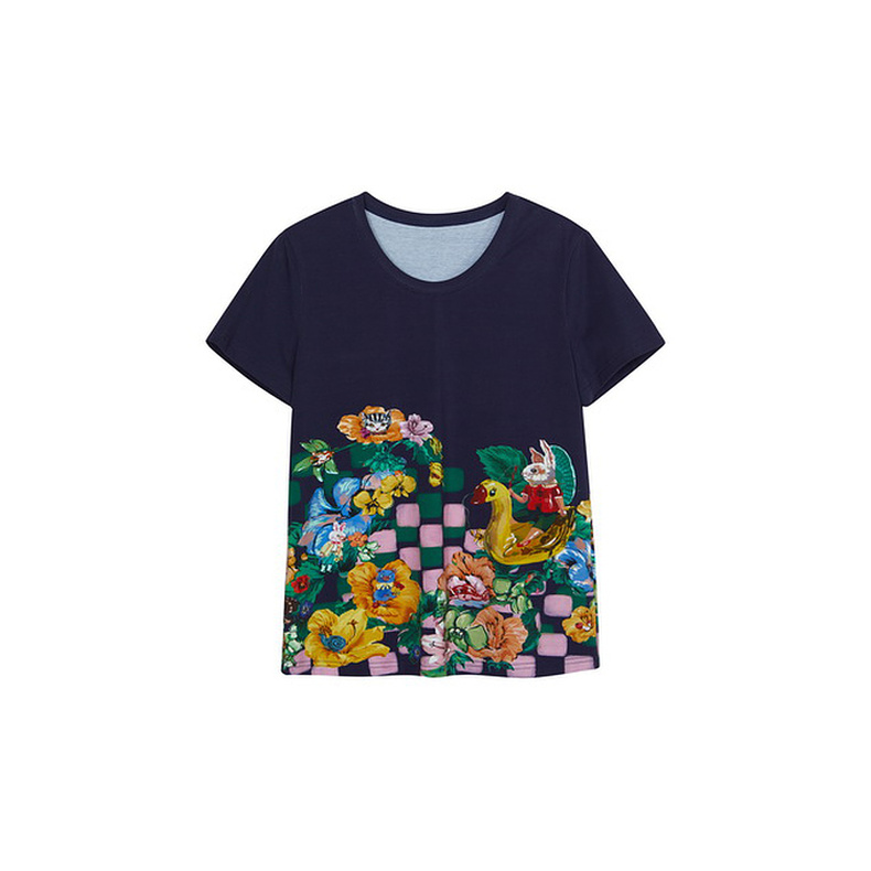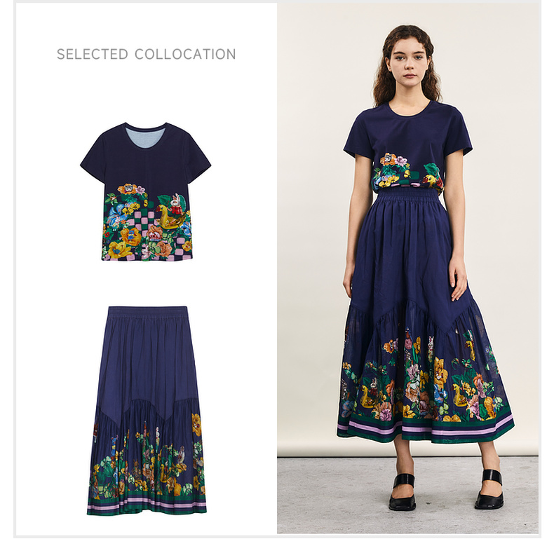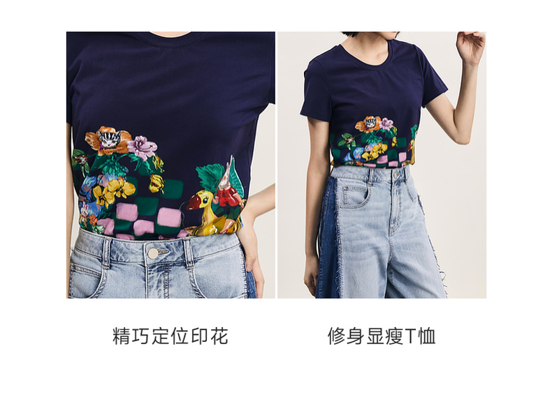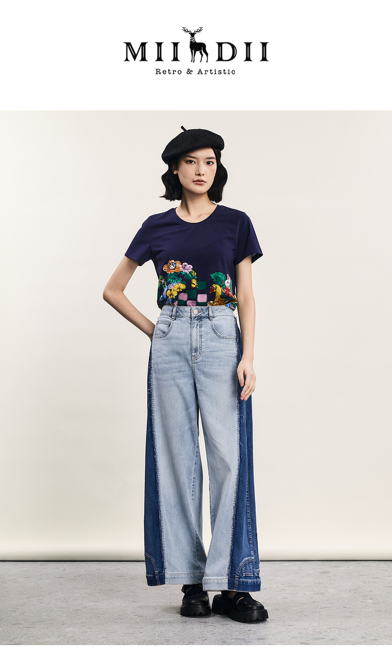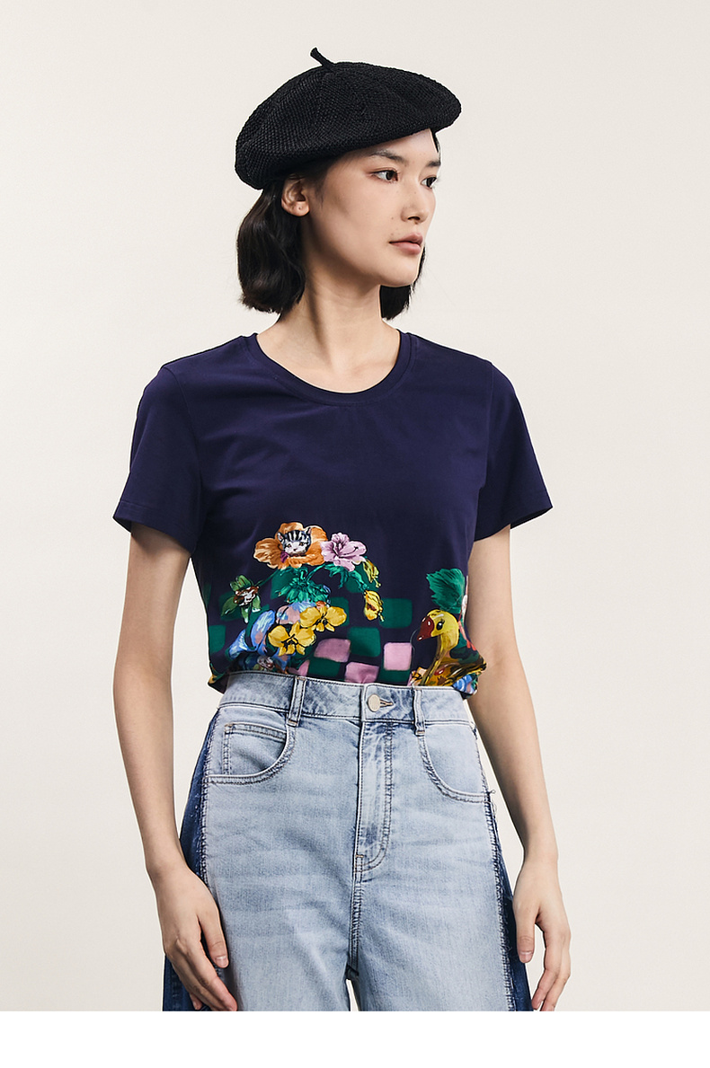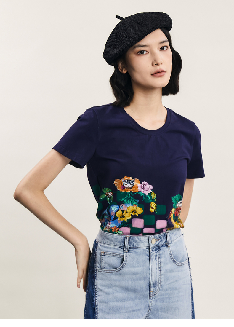 谜底主题印花T恤短袖女2024夏季新品复古风圆领百搭上衣242MT0622