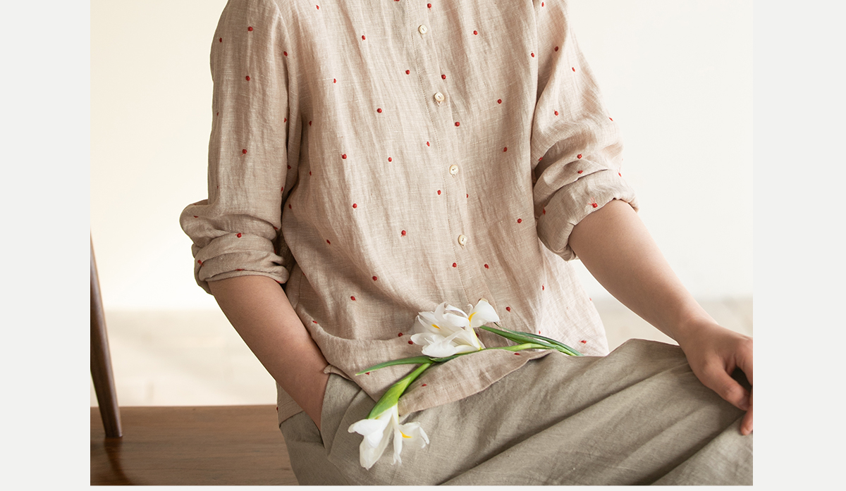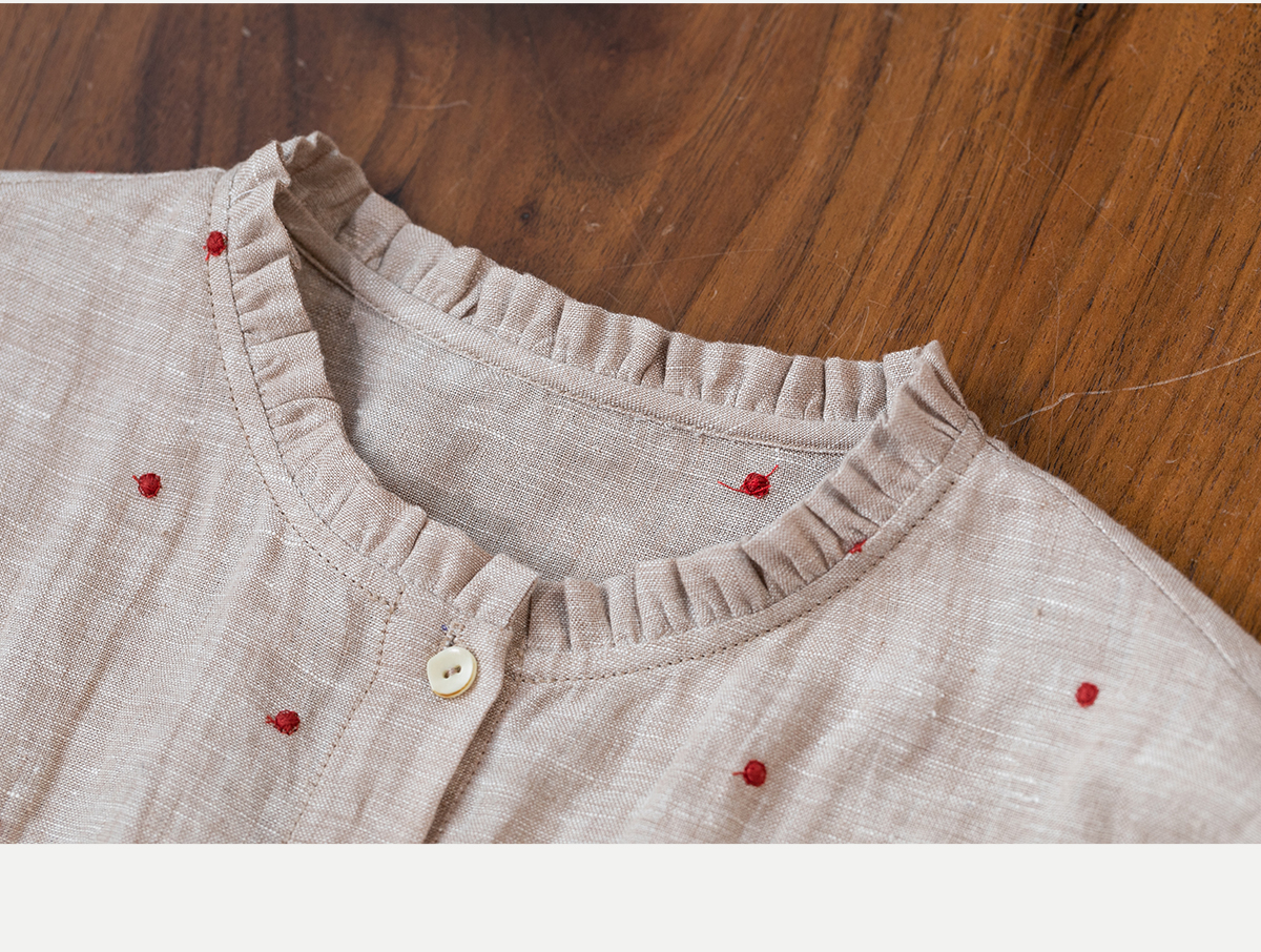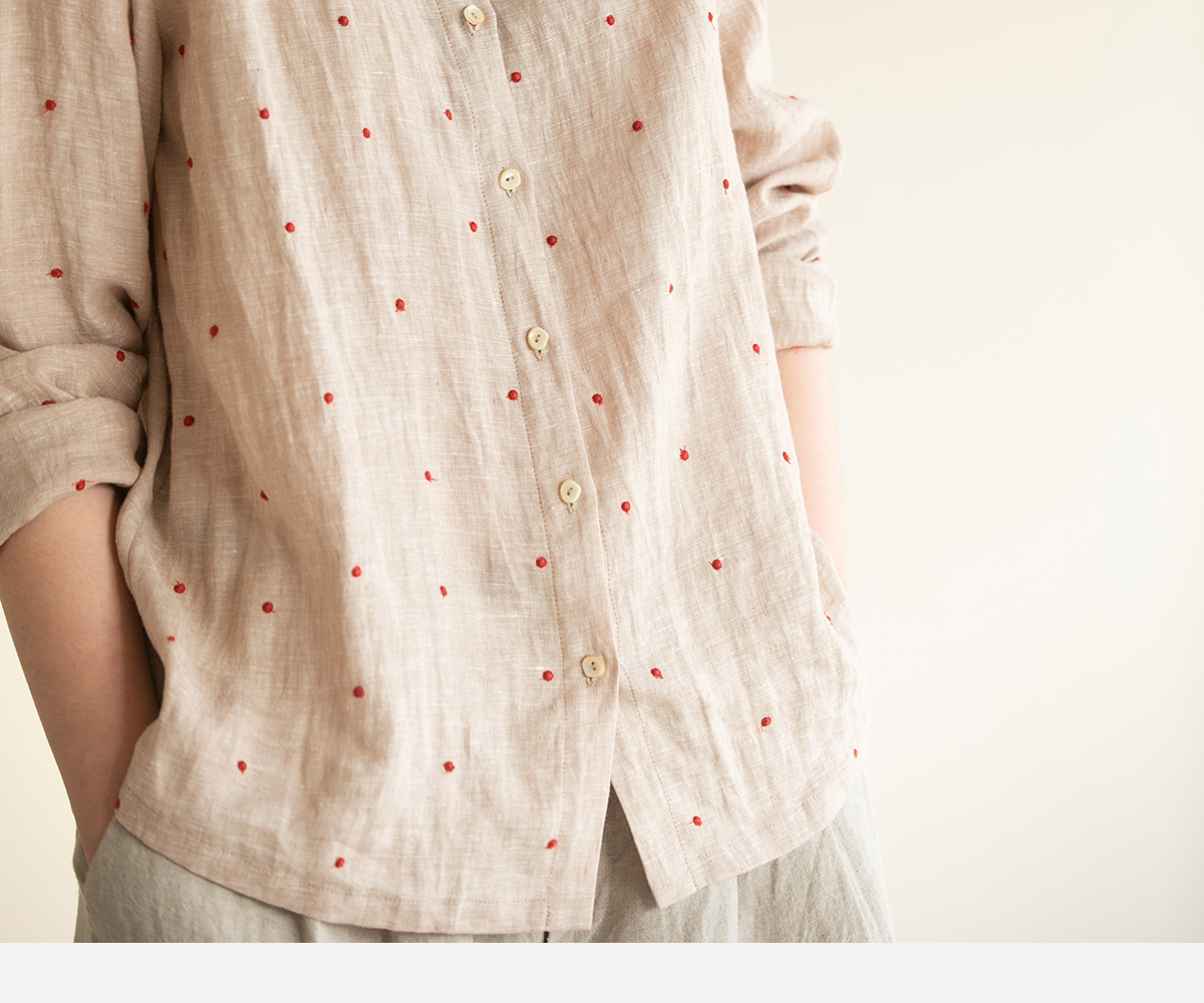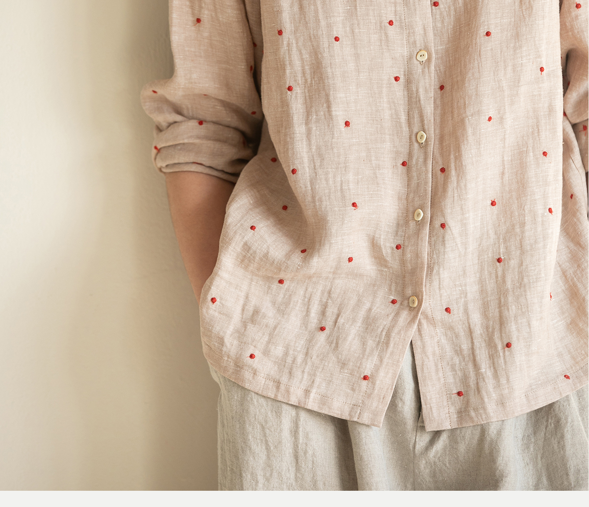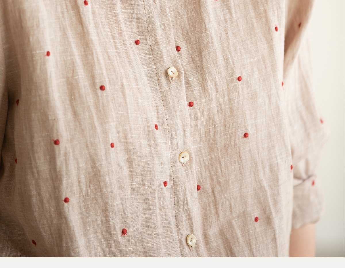 牧衣游原创 进口小雨点匹绣亚麻衬衫舒爽轻薄朴素文艺衬衣 南亭月