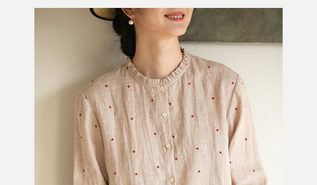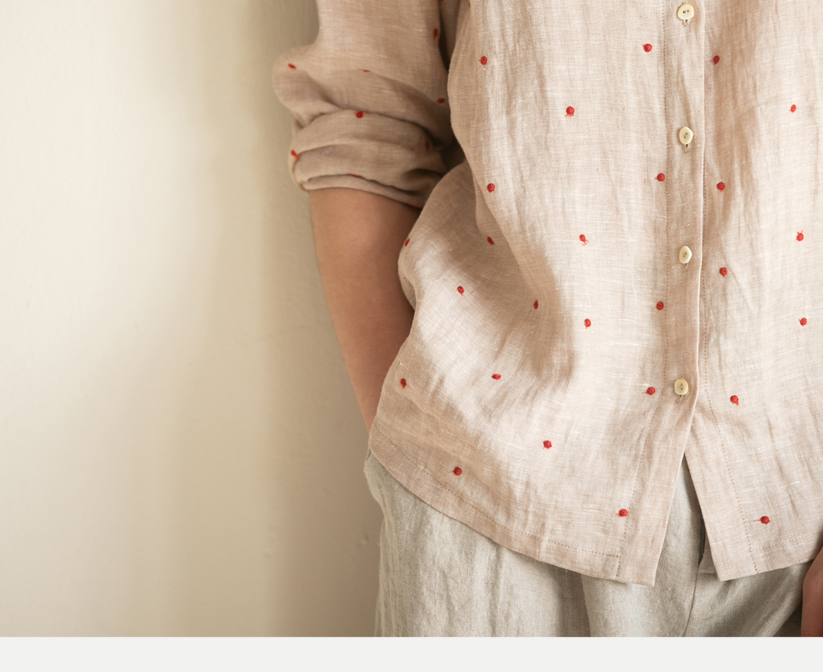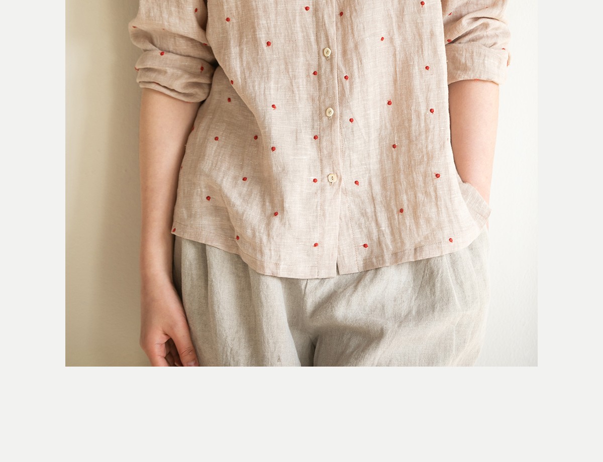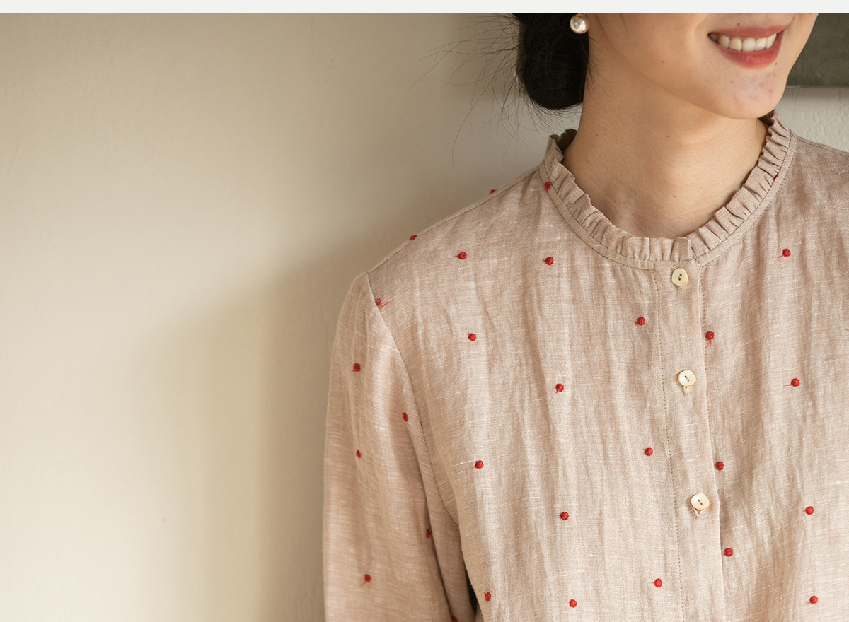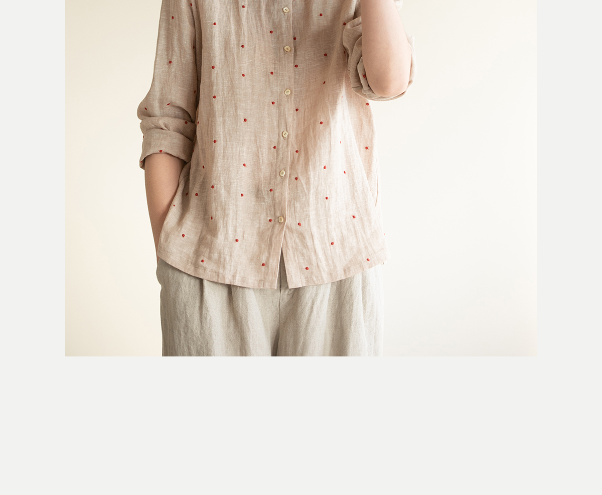 牧衣游原创 进口小雨点匹绣亚麻衬衫舒爽轻薄朴素文艺衬衣 南亭月