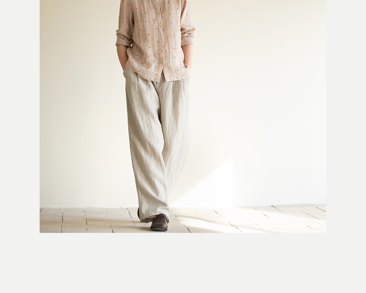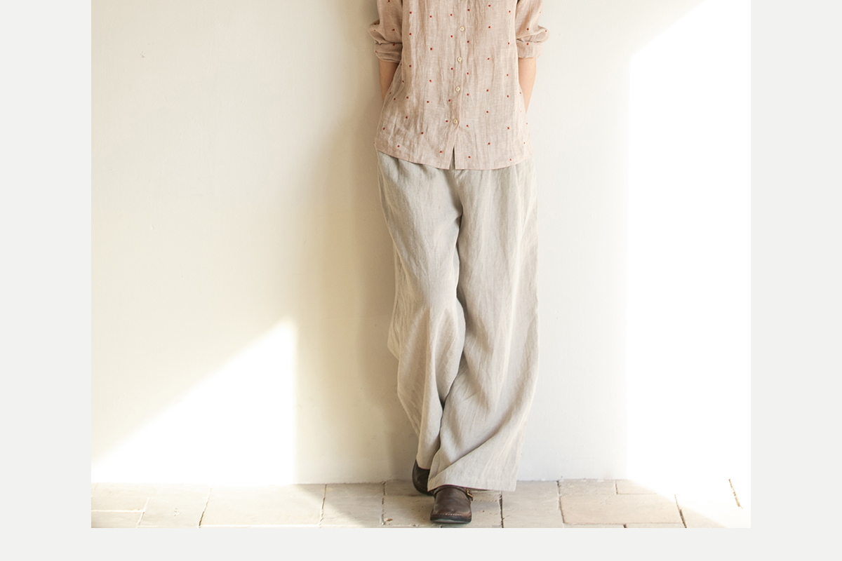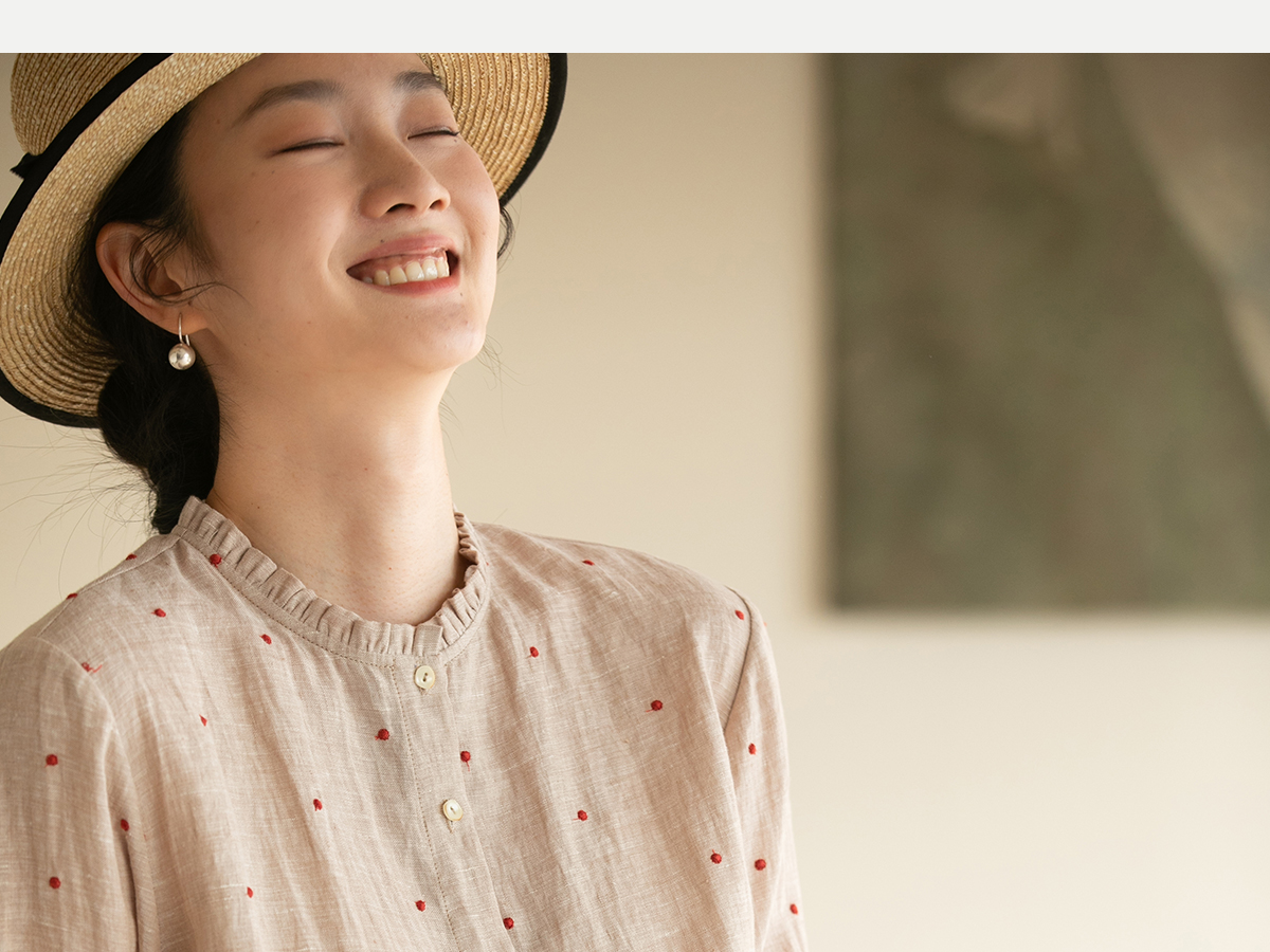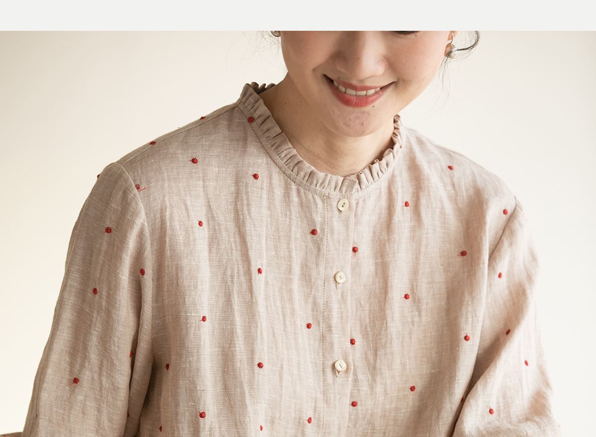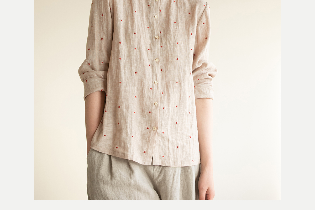 牧衣游原创 进口小雨点匹绣亚麻衬衫舒爽轻薄朴素文艺衬衣 南亭月