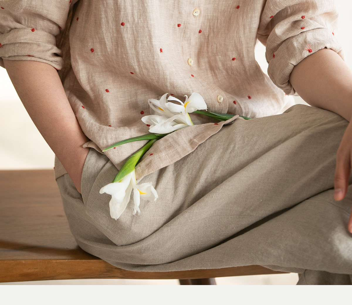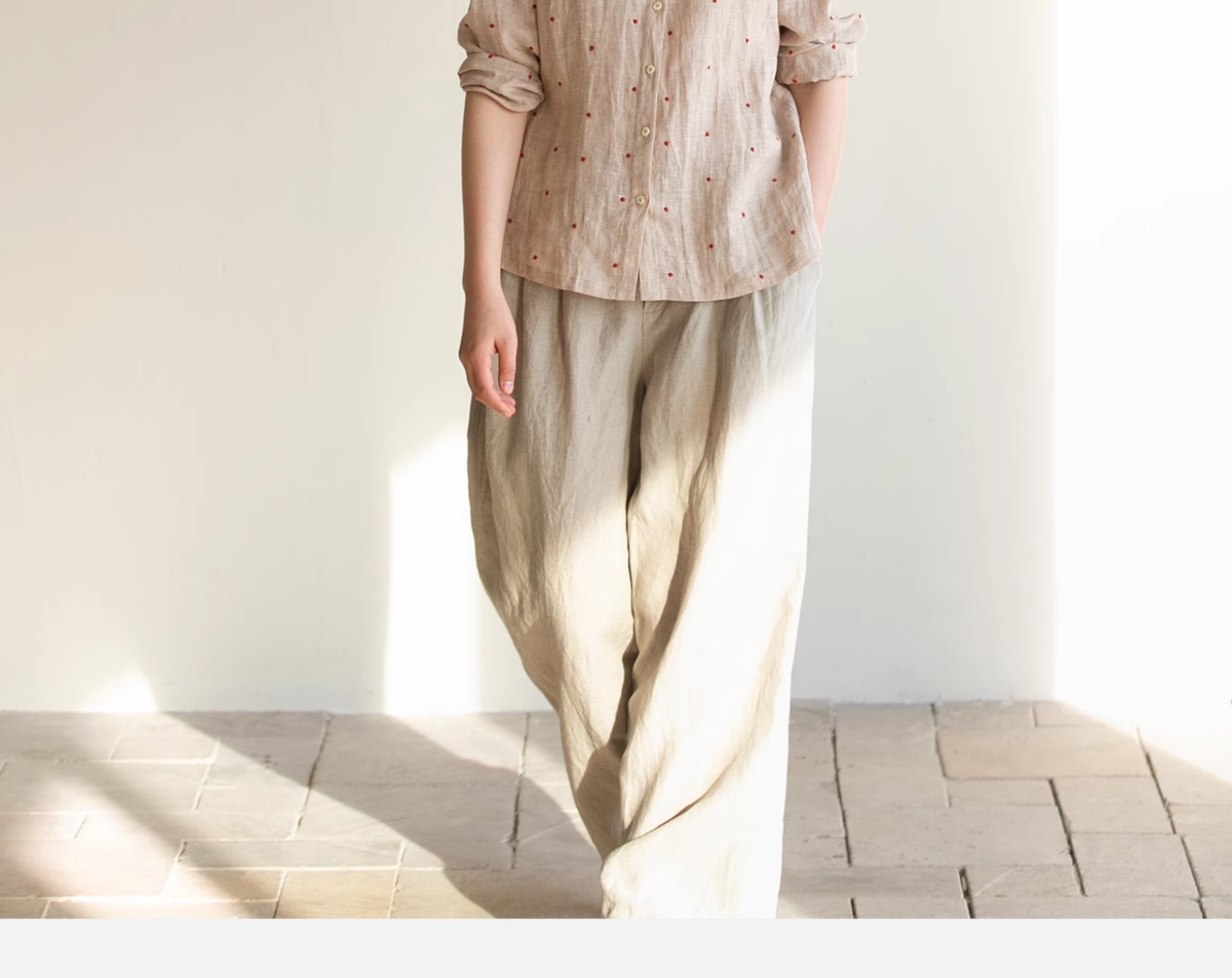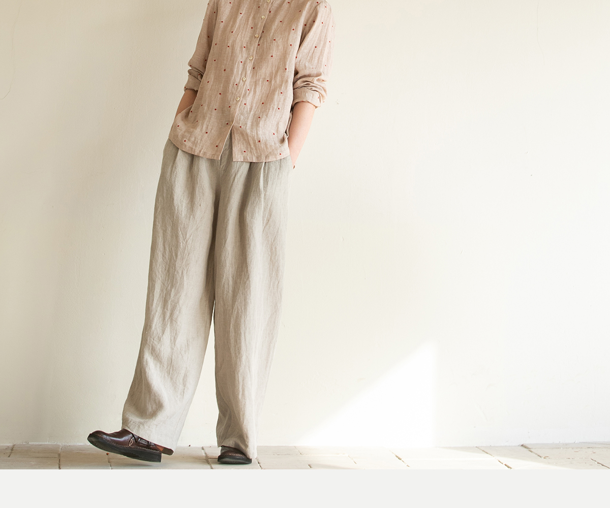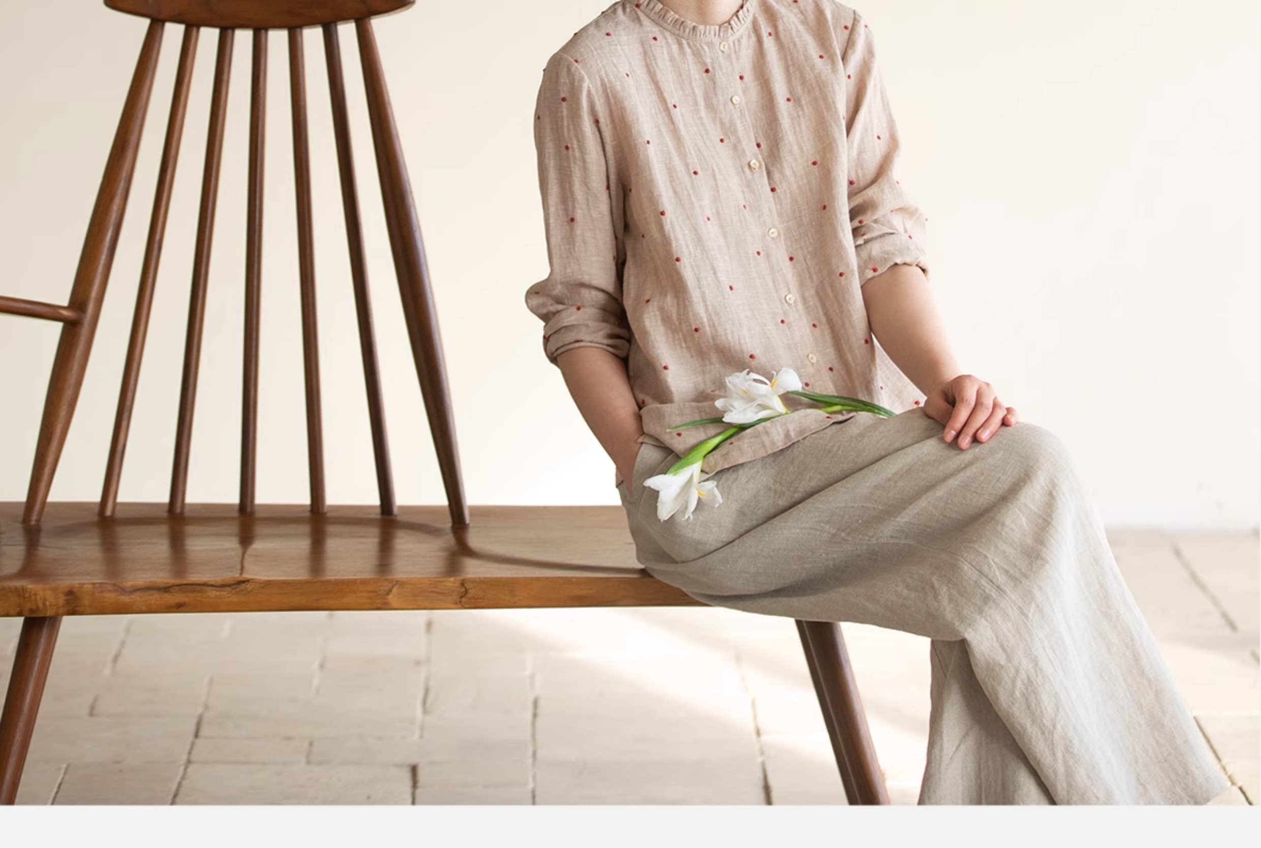 牧衣游原创 进口小雨点匹绣亚麻衬衫舒爽轻薄朴素文艺衬衣 南亭月