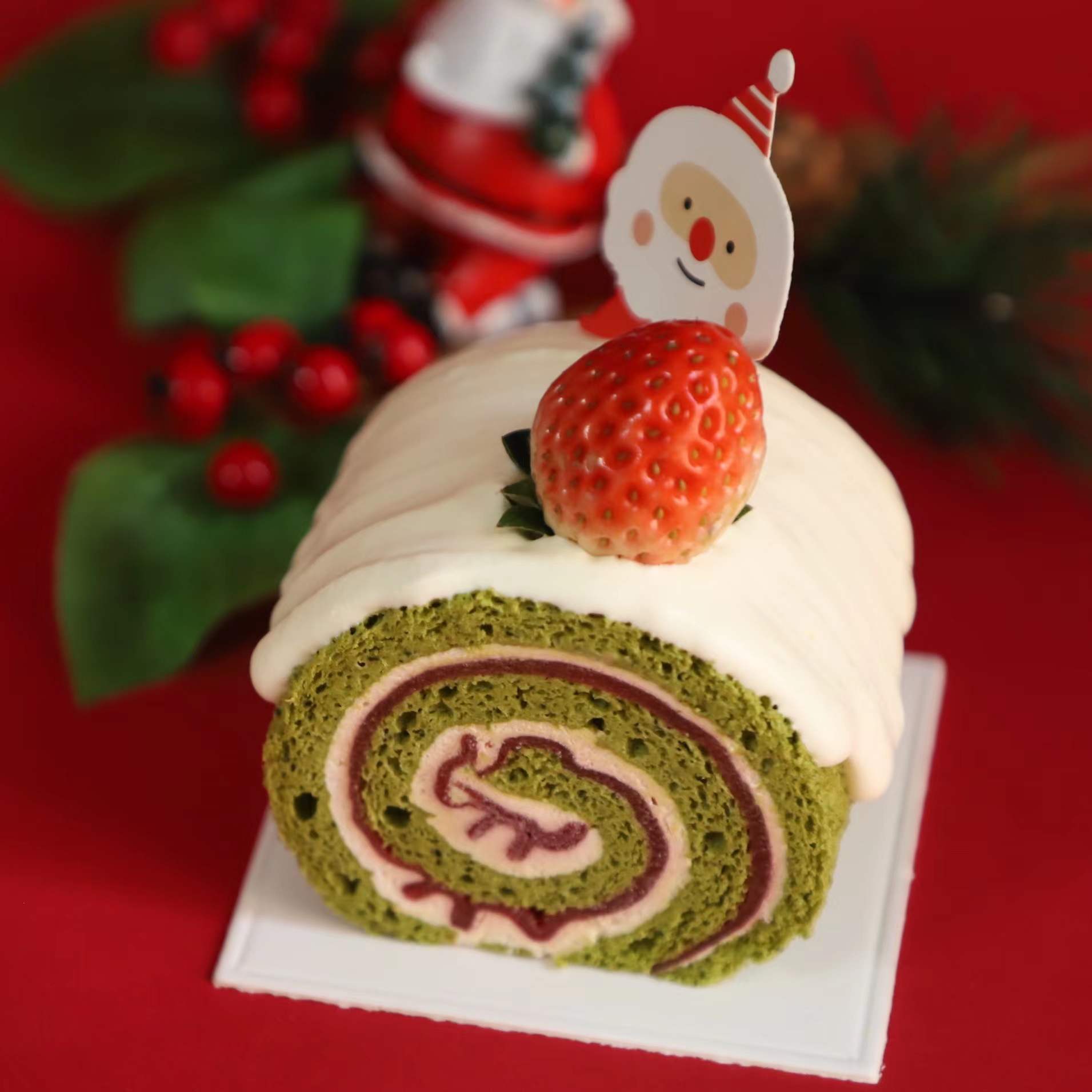 圣诞草莓抹茶卷:
