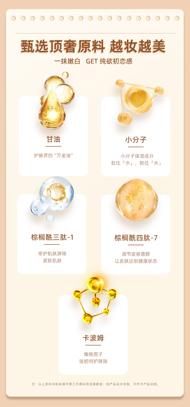 主打丝缎光泽肌,采用独特的养肤配方,能够在遮瑕的同时让肌肤呈现自然无瑕光彩!