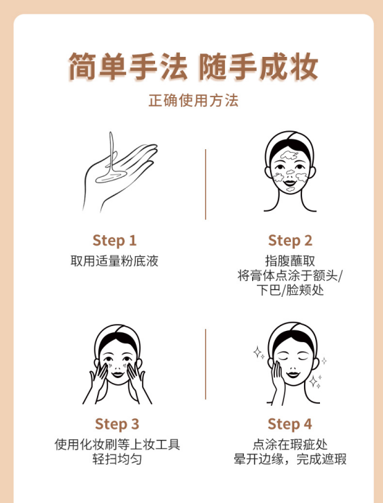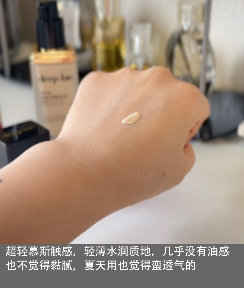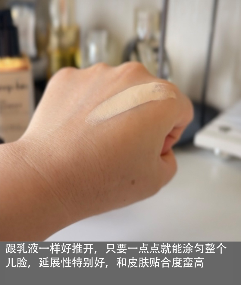 轻薄水润质地,瑕疵处也好推开并迅速与肌肤融合