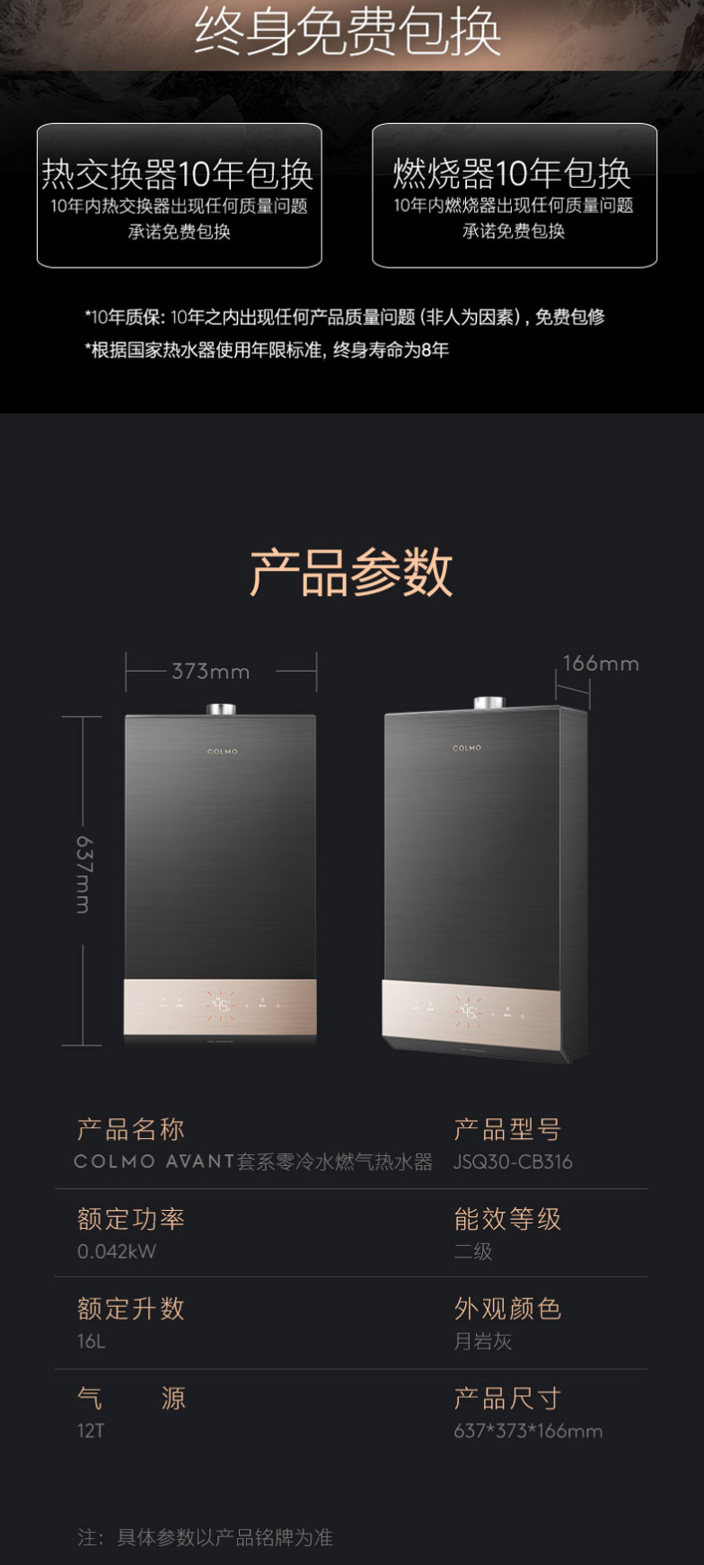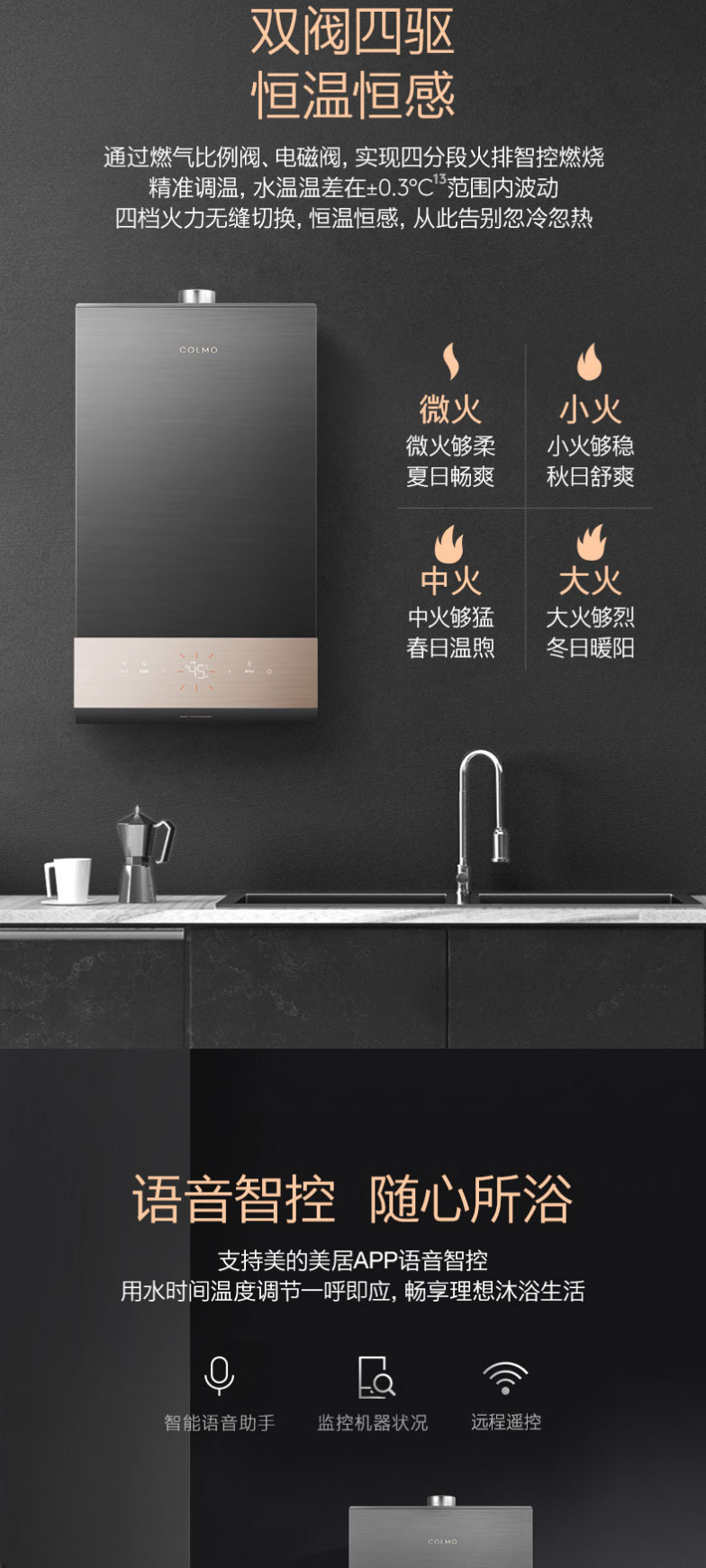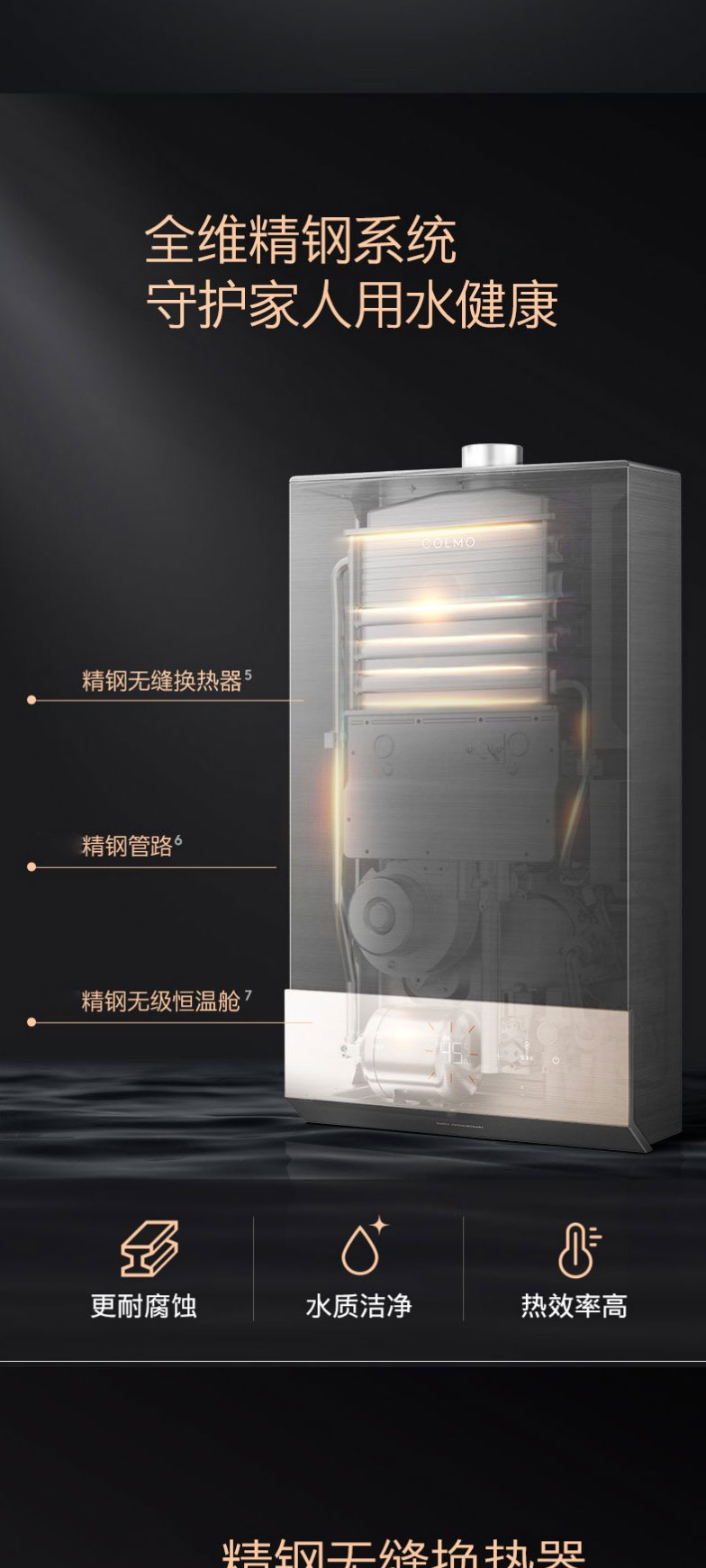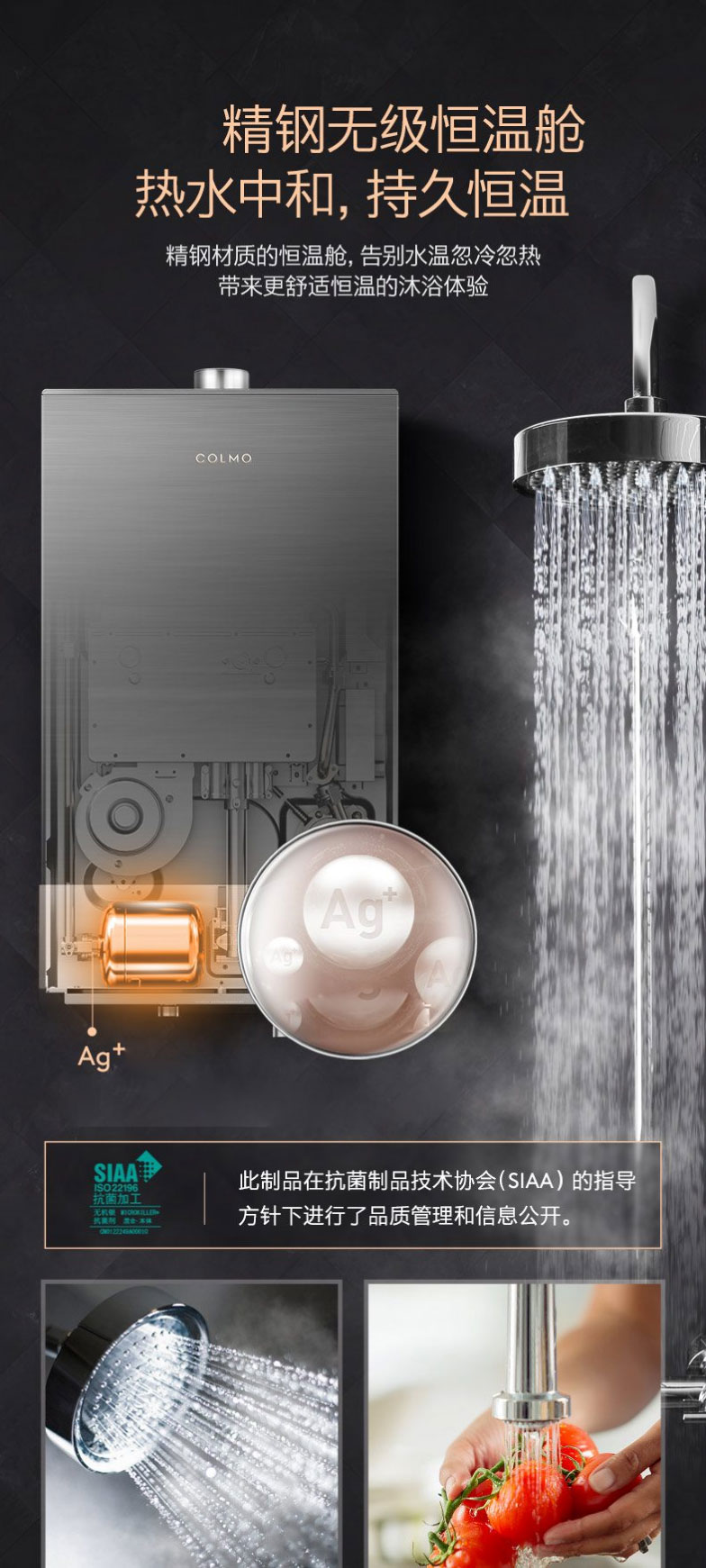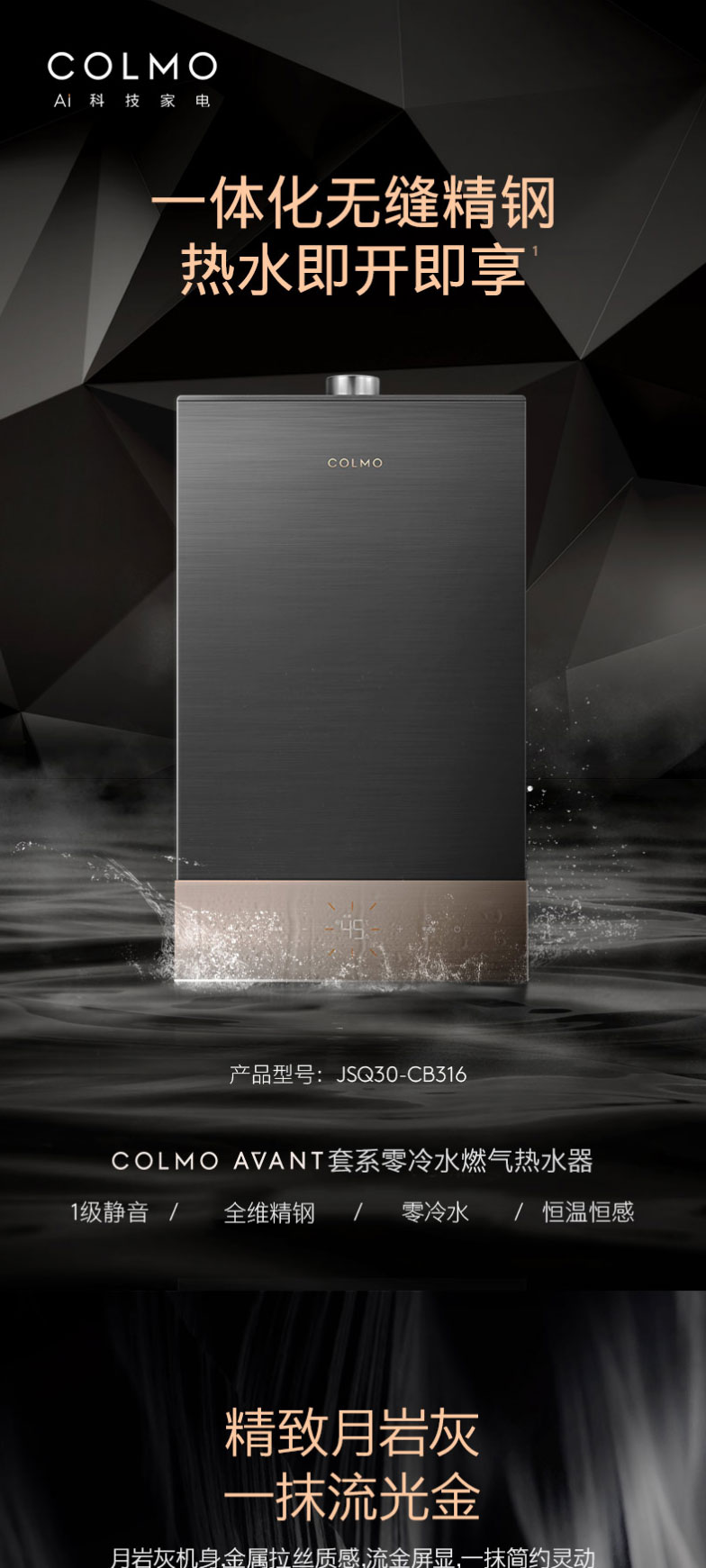 COLMO16升零冷水燃气热水器家用(天然气) 全维精钢恒温舱 一级静音 APP智控JSQ30-CB316