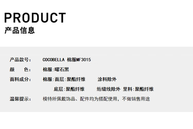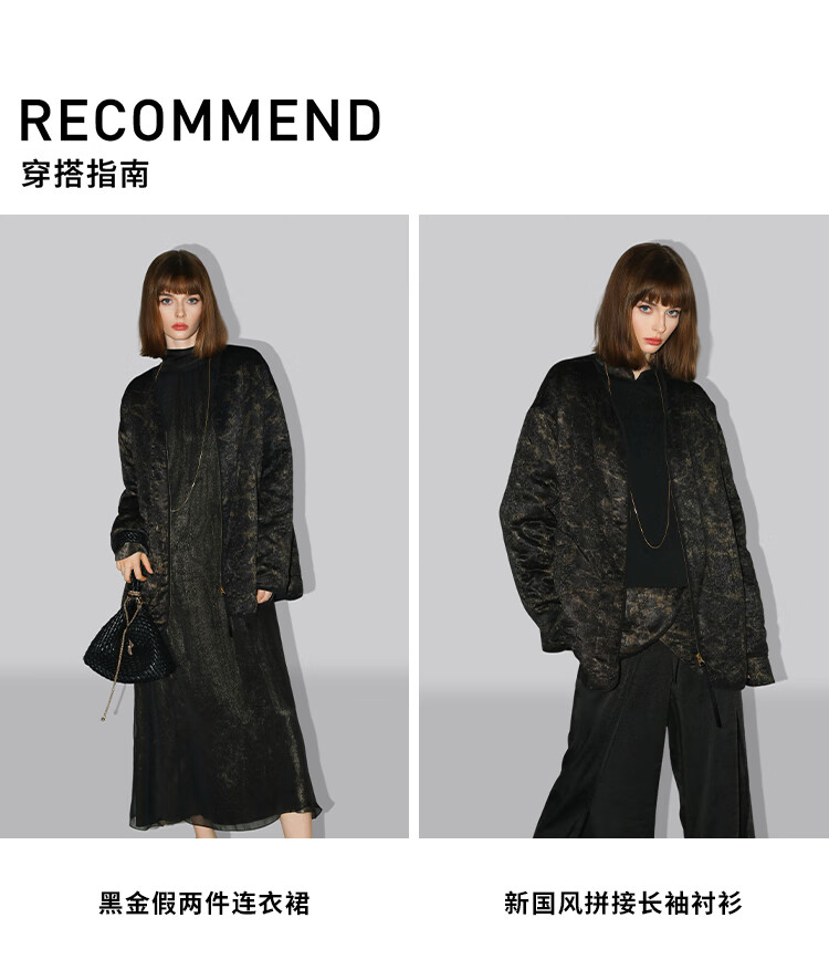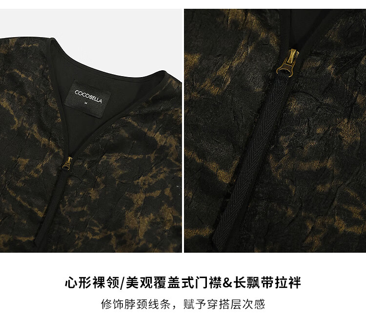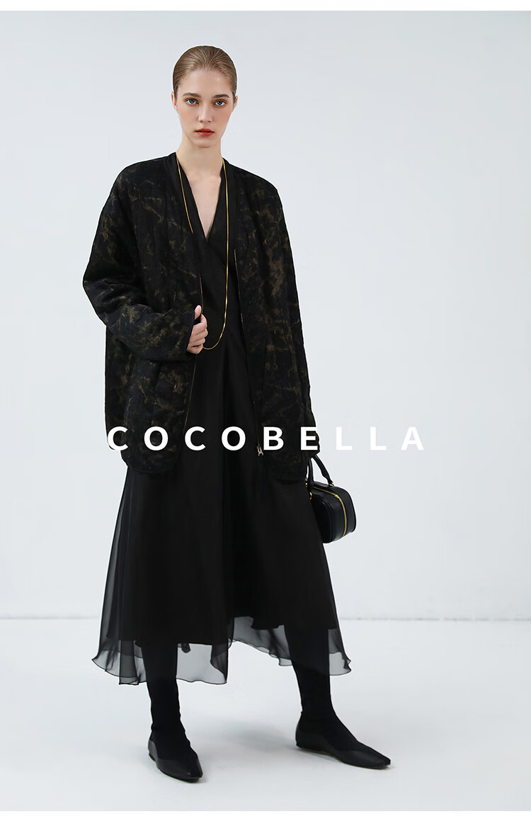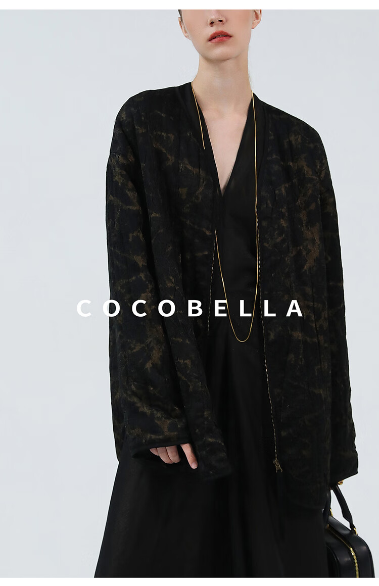 COCOBELLA新中式盘扣吊坠绗缝棉服烫金肌理感棉衣外套MF3015
