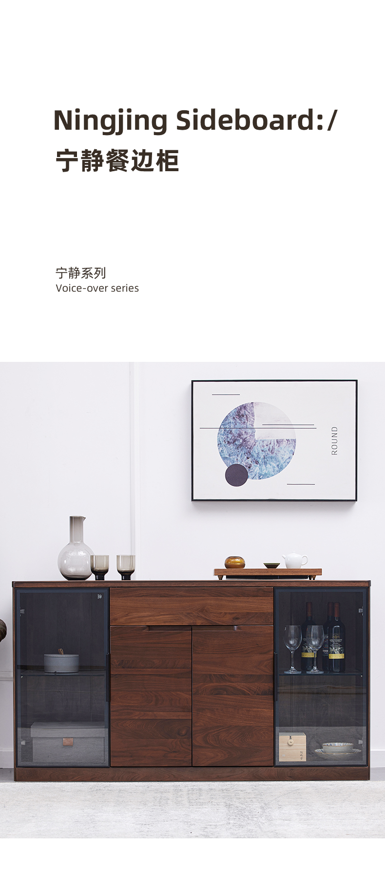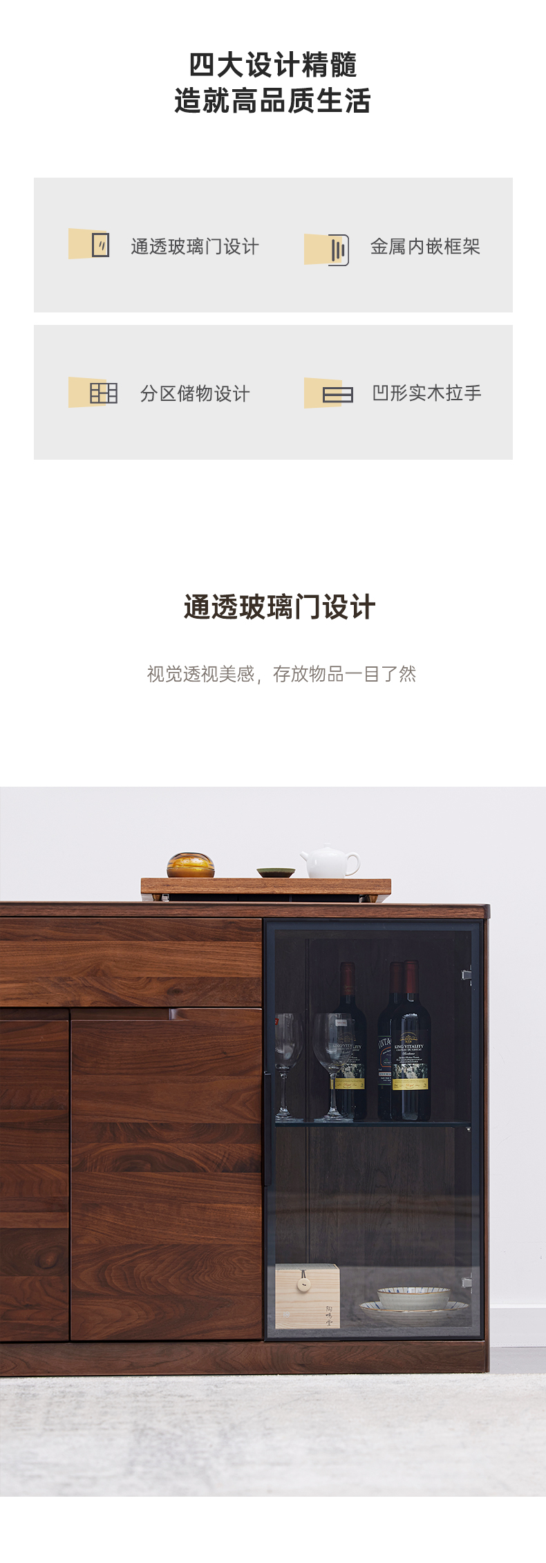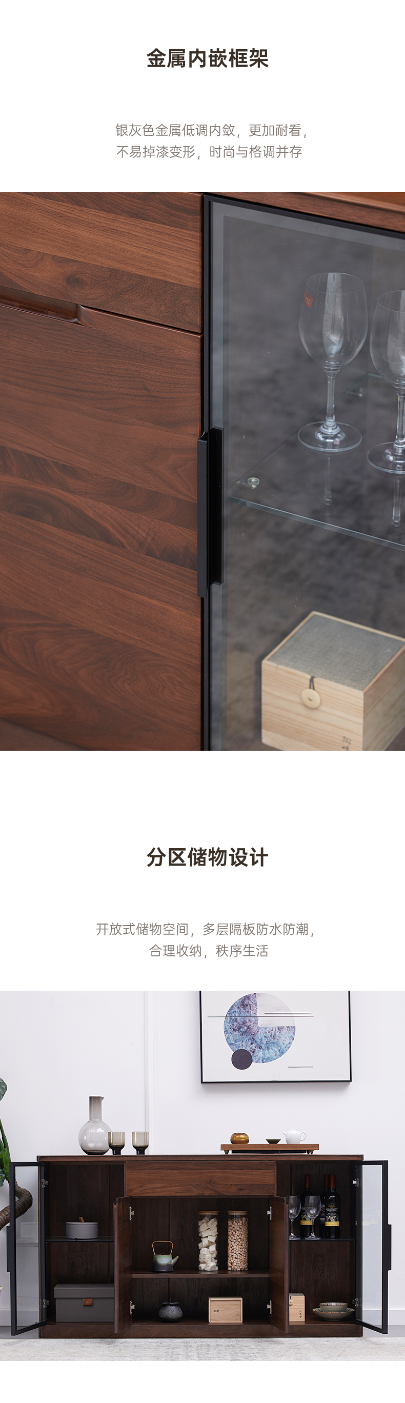 【现代实木风-NJT3301C03餐边柜】现代实木/现代简约/餐厅/北美黑胡桃/ 实木餐边柜